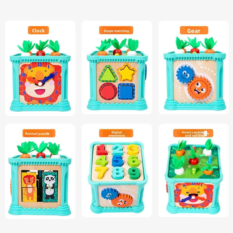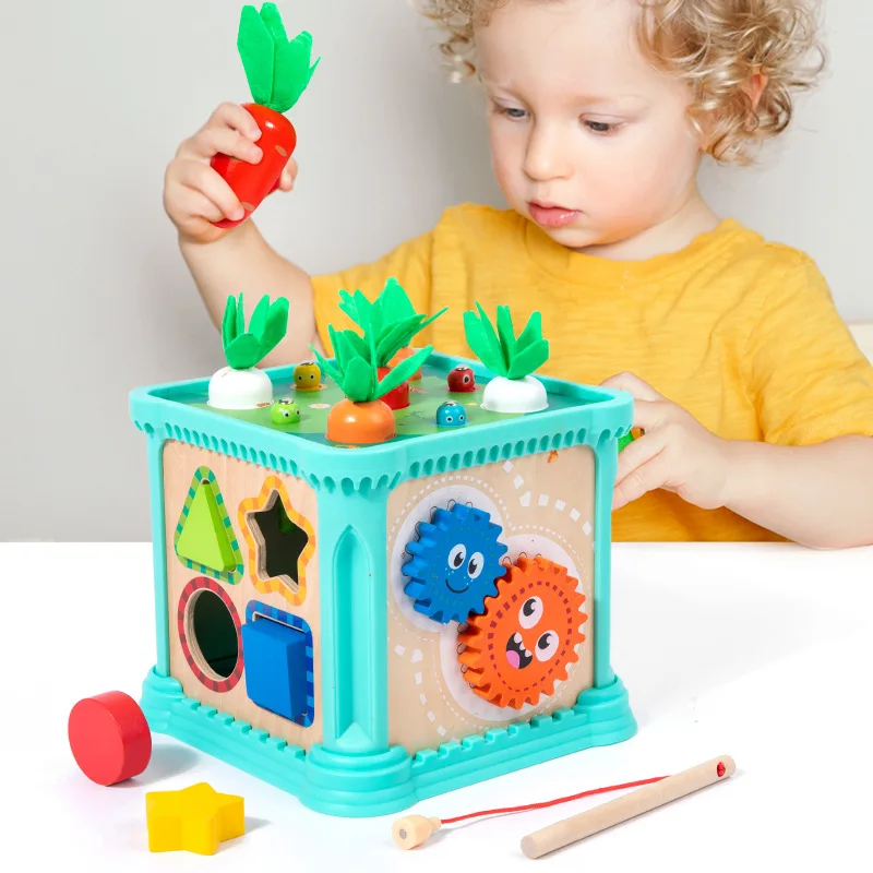 Wooden Hexahedral Activity Cube for Kids Multi Functional Early Learning Toy with Shape Pairing and Educational Play Features