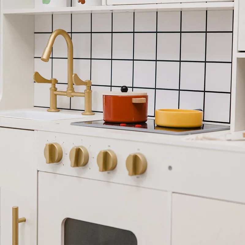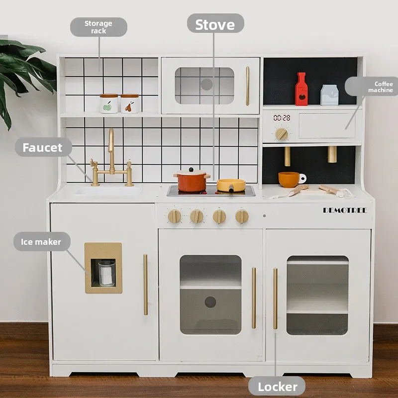 Kids Wooden Kitchen Toy Set with Luminous Stove Sink Pretend Play Cooking Early Learning Educational Role Play House Simulation