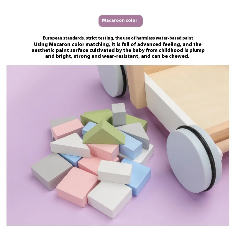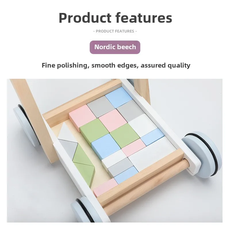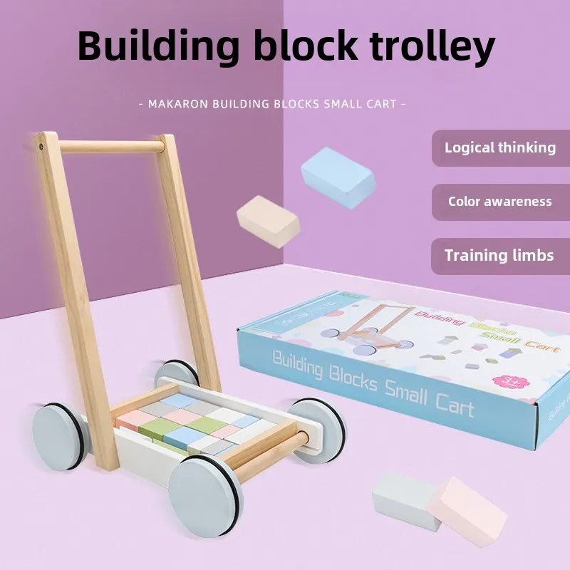 Multi-functional Baby Wooden Trolley Walker Building Blocks Stroller Educational Learning Toys for Kids Toddler Boys & Girls