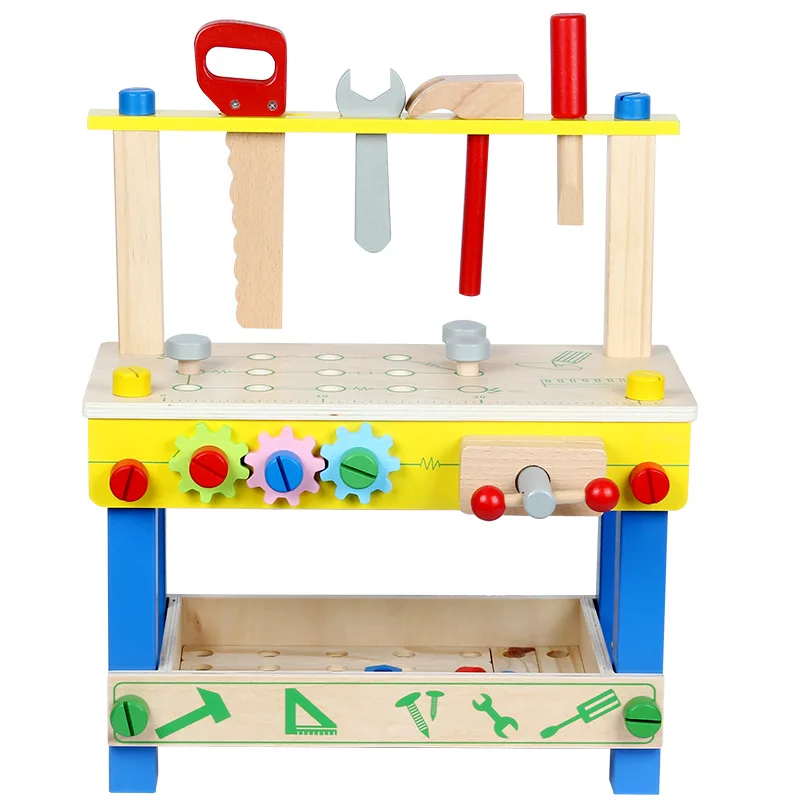 New Educational Pretend Play Set for Boys Children's Simulation Wooden Tool Bench and Luban Chair Nut Assembly Kid's Model Toy