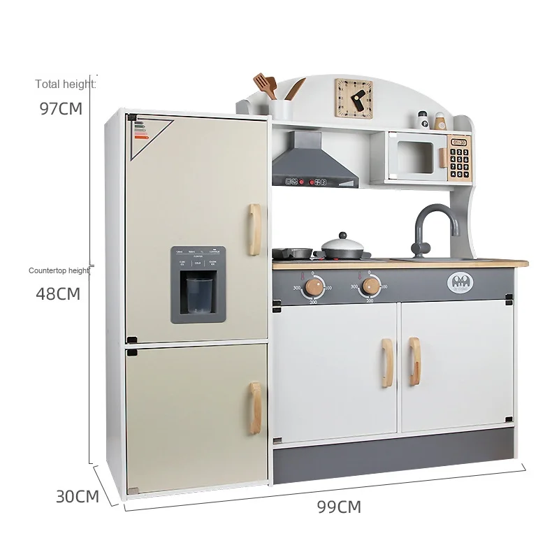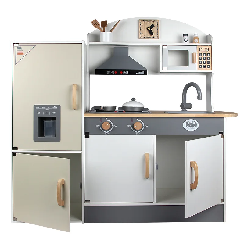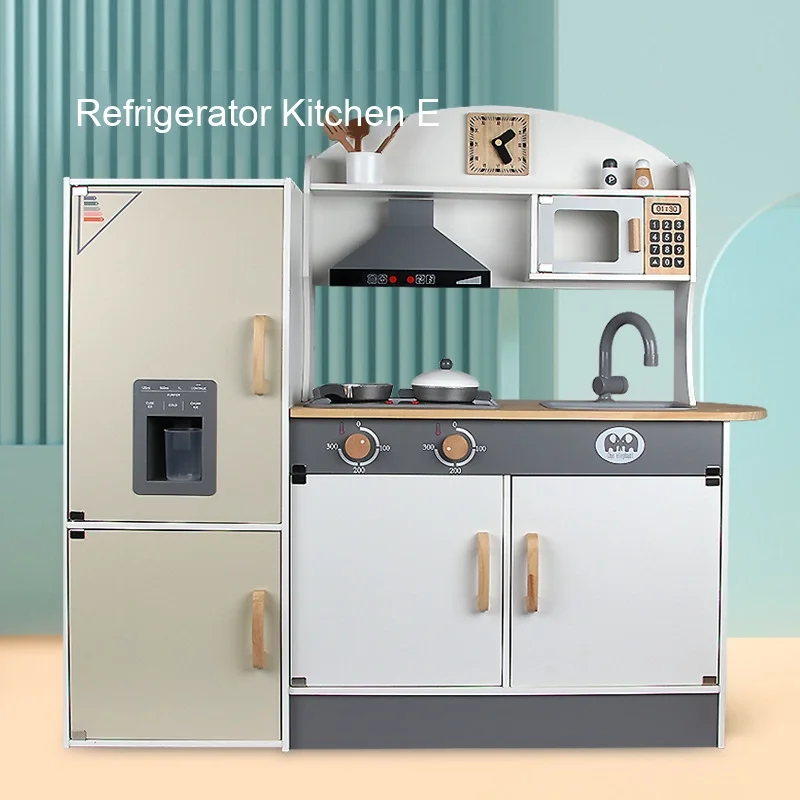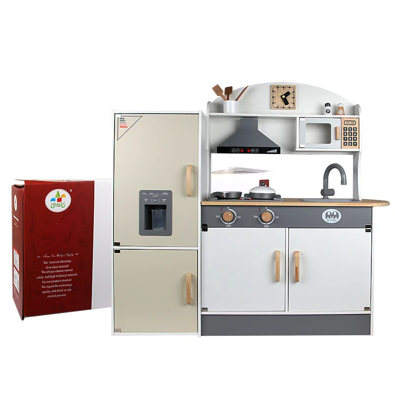 Wooden Educational Pretend Play Cooking Set for Children Play House Stove Refrigerator Sound Effects Packed Box Kitchen Toys