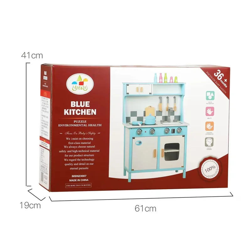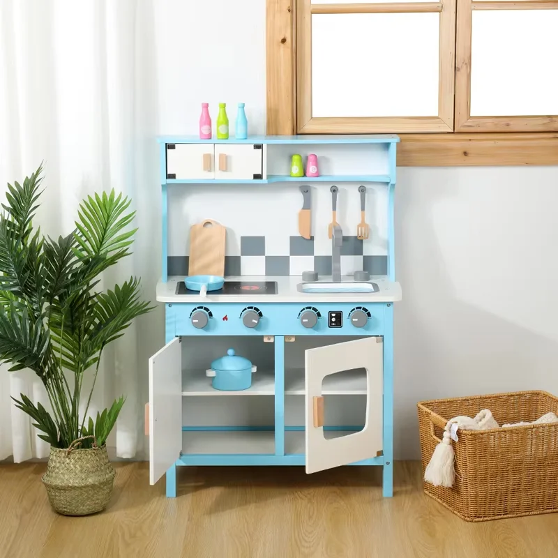 Wooden Kitchen Toys Blue Play Kitchen Toys Pretend Play Cooking Game Role Playing Game