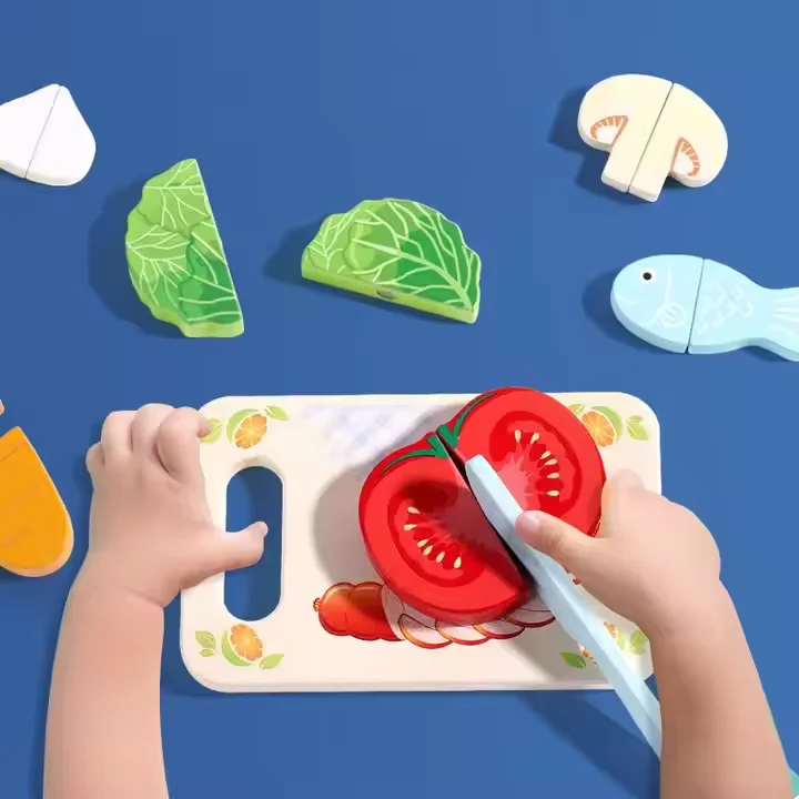 Montessori Wooden Pretend Role Play Giraffe Elephant Kitchen Stove Fruits Cut Games Educational Toys for Kids Boys Girls CE
