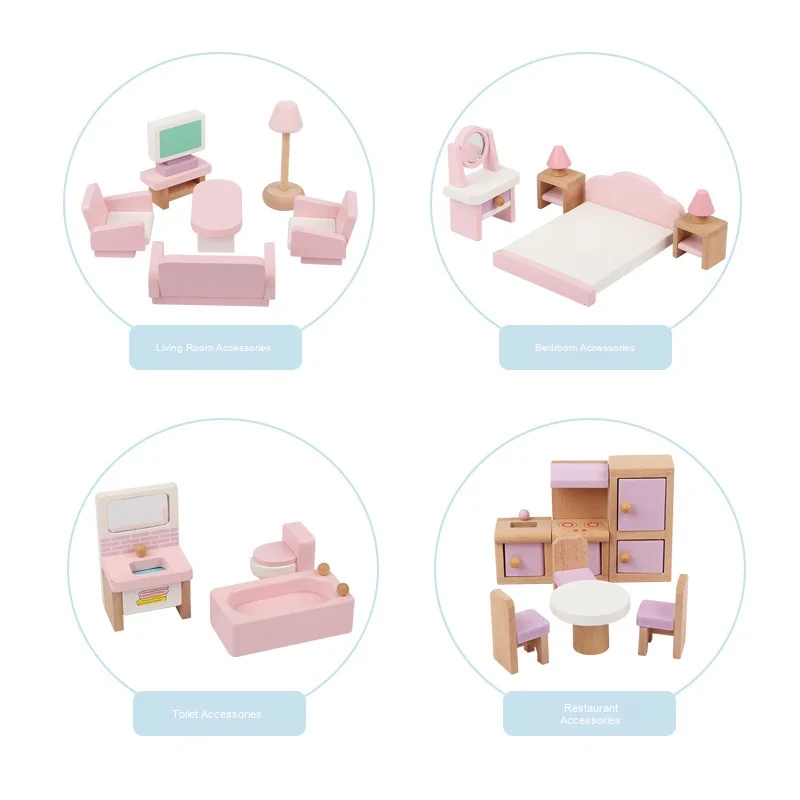 Early Educational Handmade Wooden Princess for Dollhouse Villa Kids Pretend Role Play Toy Model House Assembling Toy