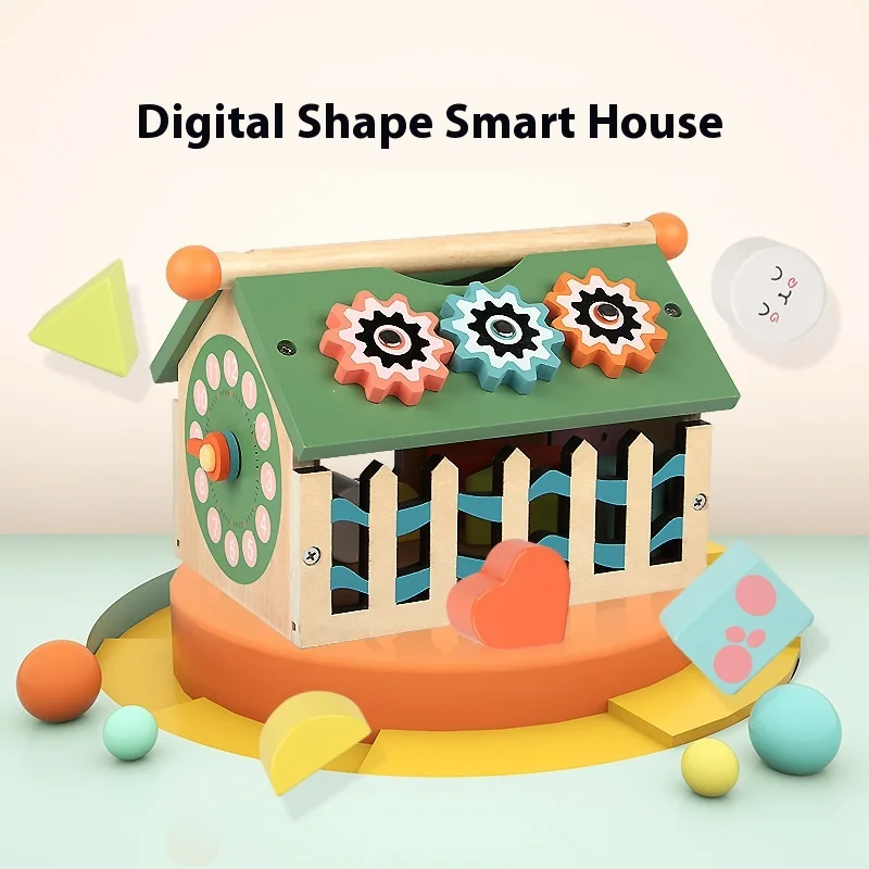 Wooden Montessori Multi-Functional Wisdom House Matching Toys Digital Learning Geometric Shape Recognition for Kids and Boys