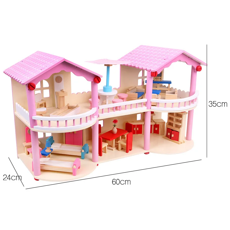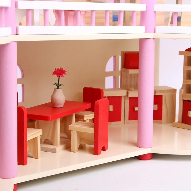 Large Pink Wooden Villa New Simulation Doll House for Kids Mini Furniture Set Role Pretend Play Toys