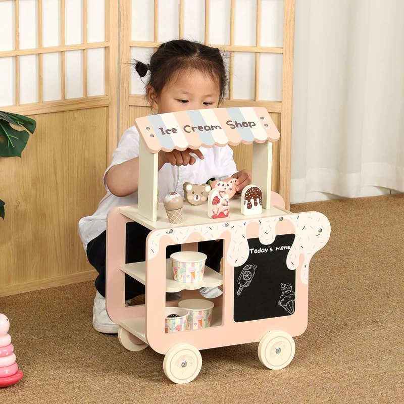 Playing House Dream Ice Cream Stall Cart Simulation Popsicle Set Children's Sales Table Role-playing Wooden Toys