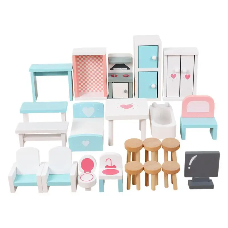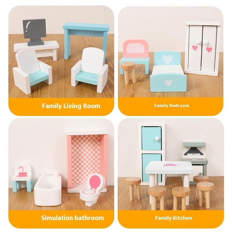 Wooden Children Mini Simulation Doll Sofa Cabinet Closet Small Furniture Set Play Every Family Parent Child Interactive Toys