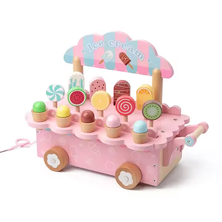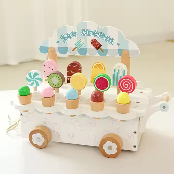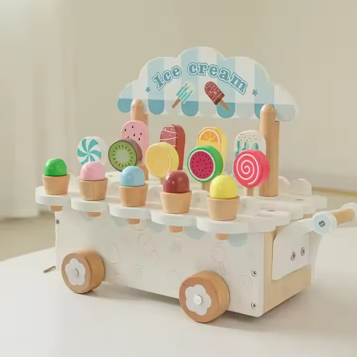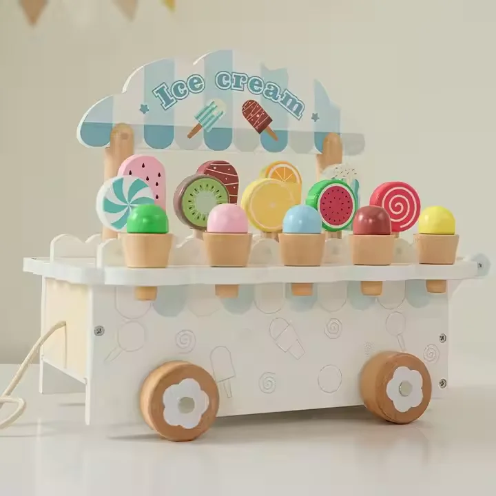 Unisex Ice Cream Cart Parent-child Role Play Interactive Gift Wooden Pretend Play Food Educational Toys for Kid Boys & Girls