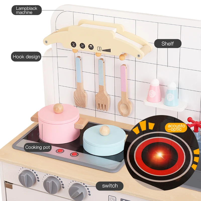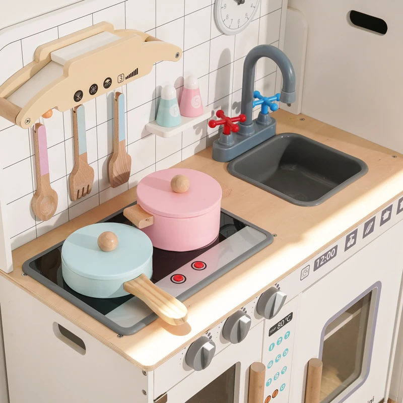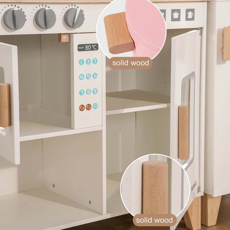 Hot Sell Kitchen Set Simulation Kitchen Danish Noble White Kitchen Early Educational Doll House Wooden Toys for Kids Boys Girls