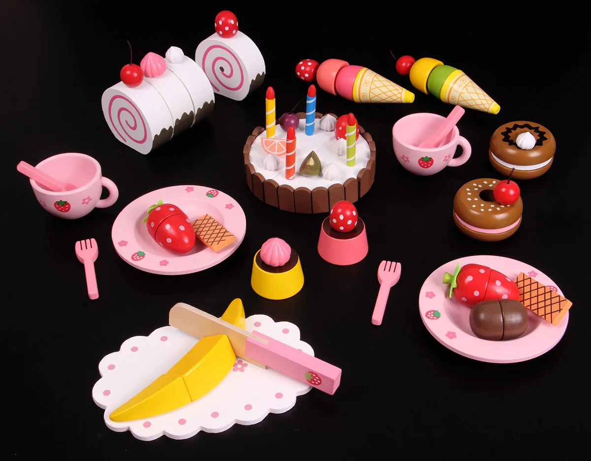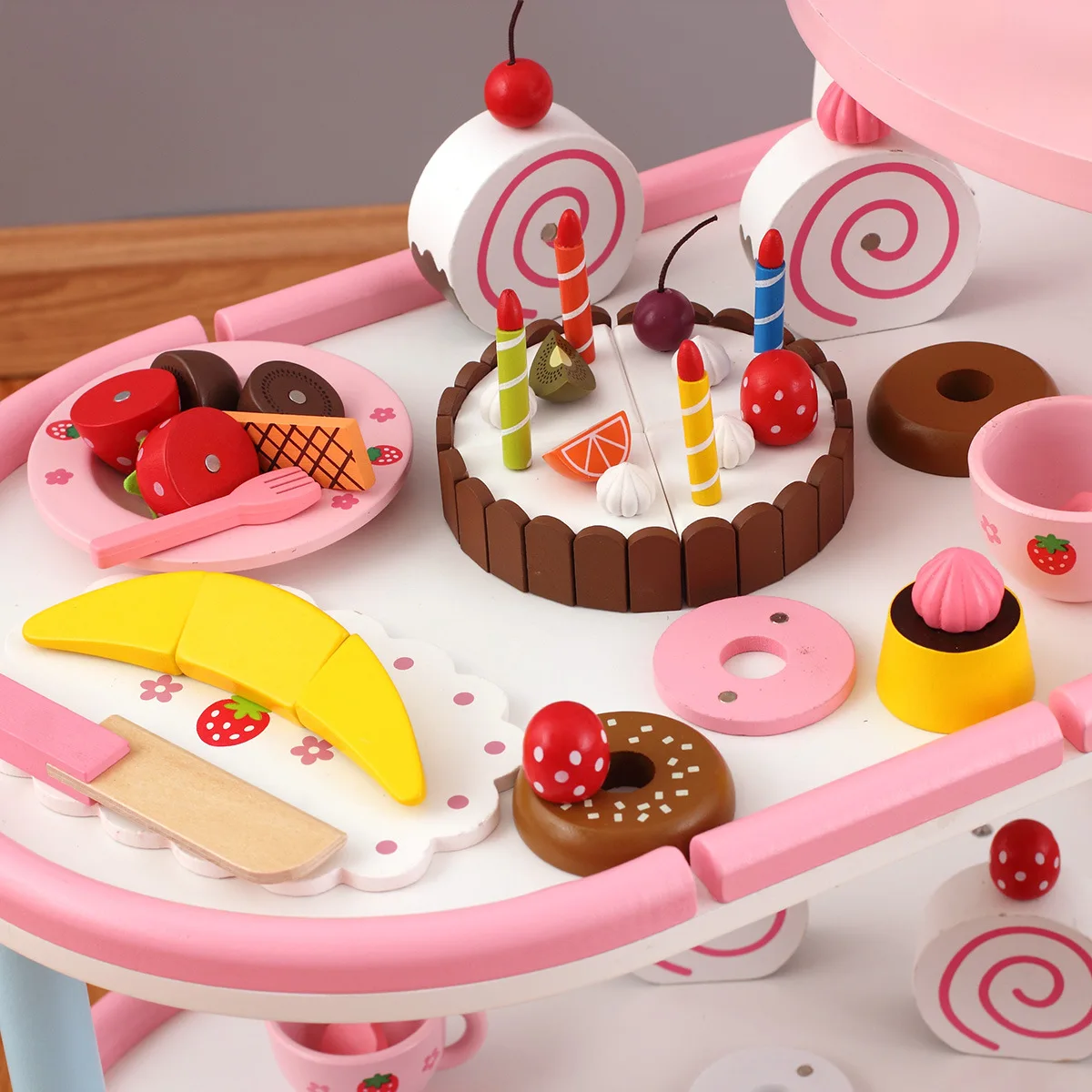 Beautiful Design Children's Cakes and Desserts Trolleys Juguetes Wood Montessori Pretend Preschool Toys for Kids Boys Girls CE