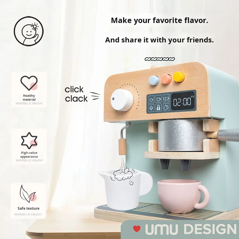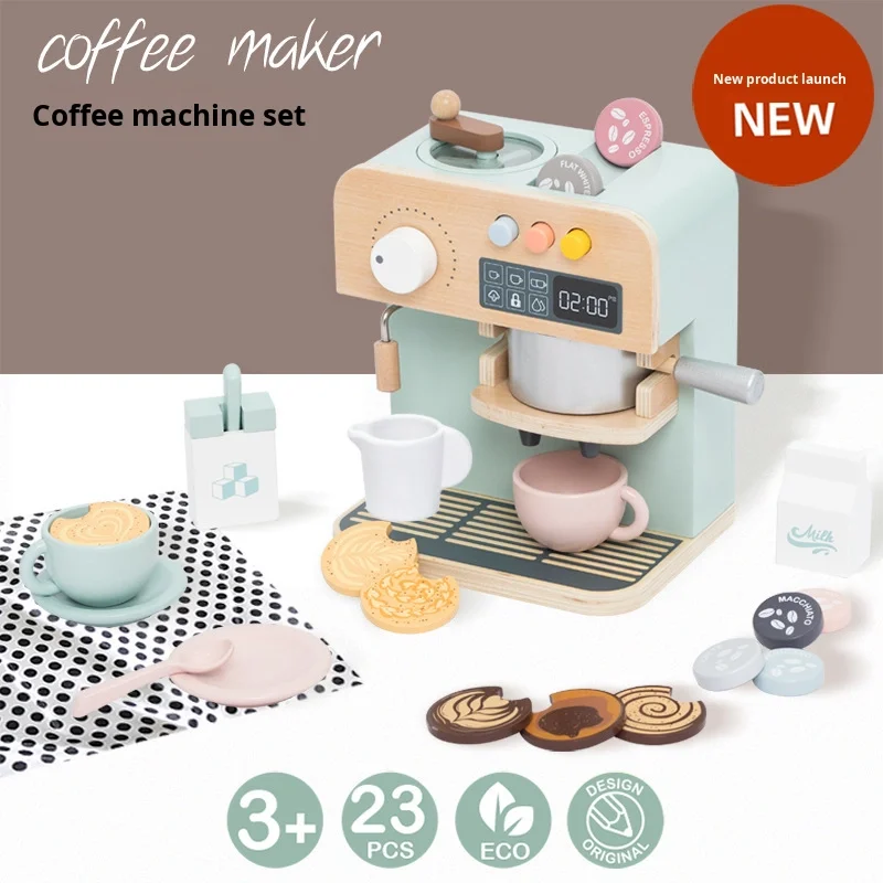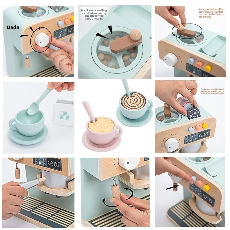 Kids Wooden Pretend Play Coffee Maker Set Early Learning Toy for Imaginative Role Play and Puzzle Fun Mini Household Appliance