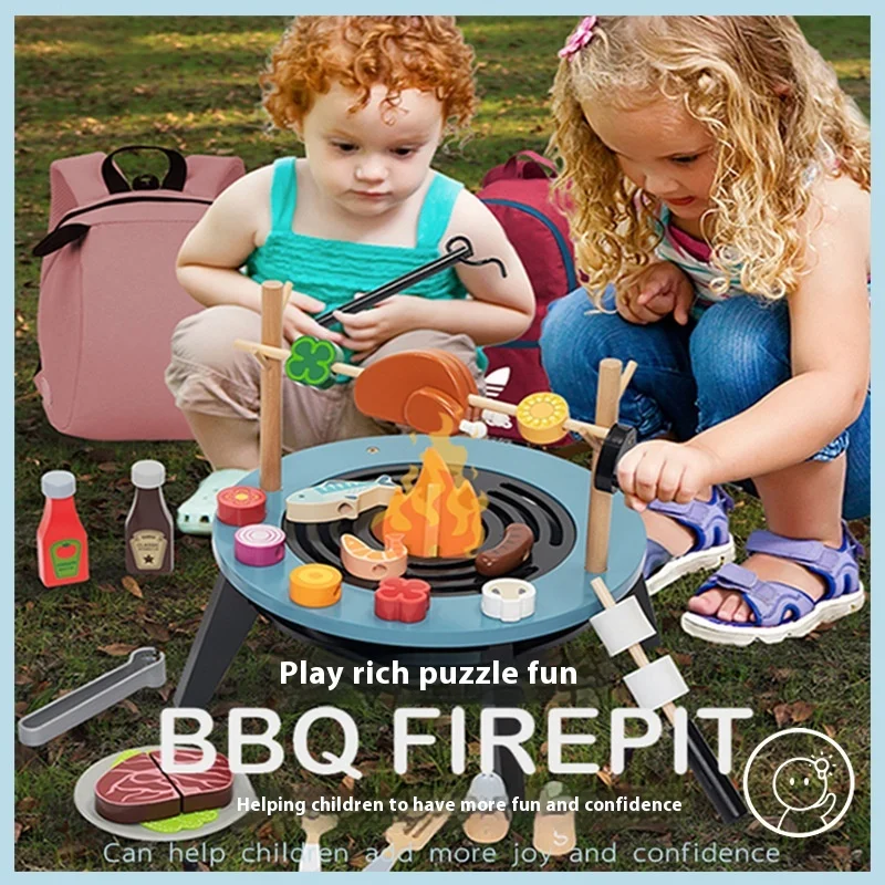 Multi-functional Outdoor Campfire Kitchen Role Pretend Play BBQ Set Educational Learning Toys for Kids Toddler Boys & Girls