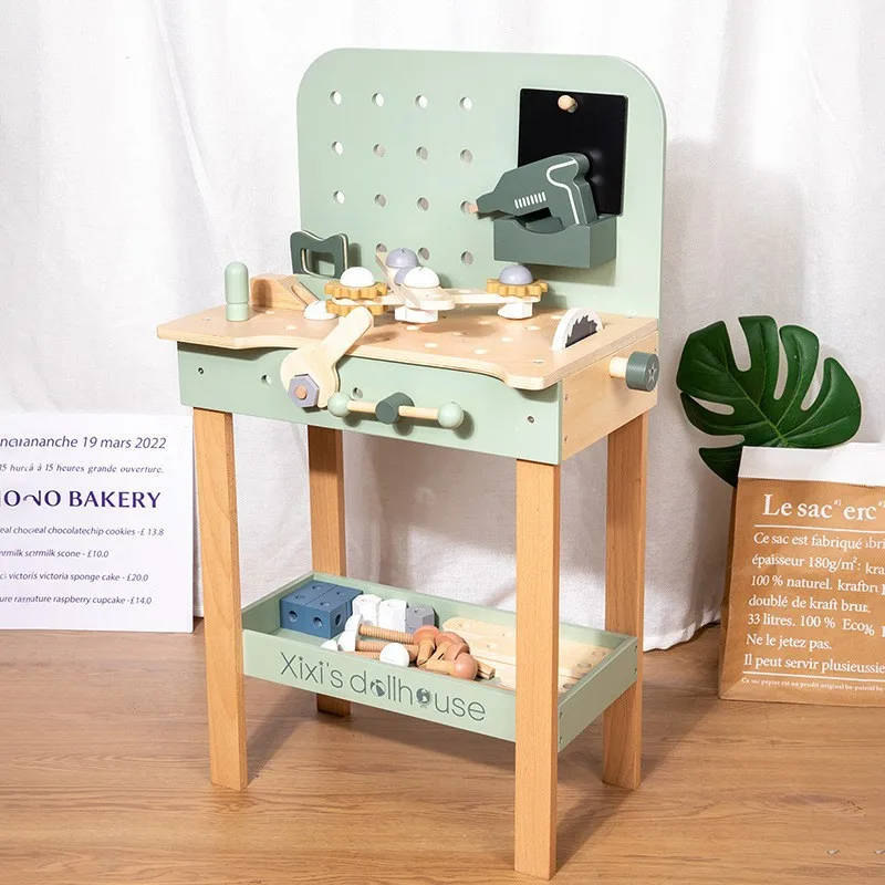 Kids Wooden Tool Bench Puzzle Set with Screw Combination Disassembly Practice for Early Learning and Fine Motor Skills