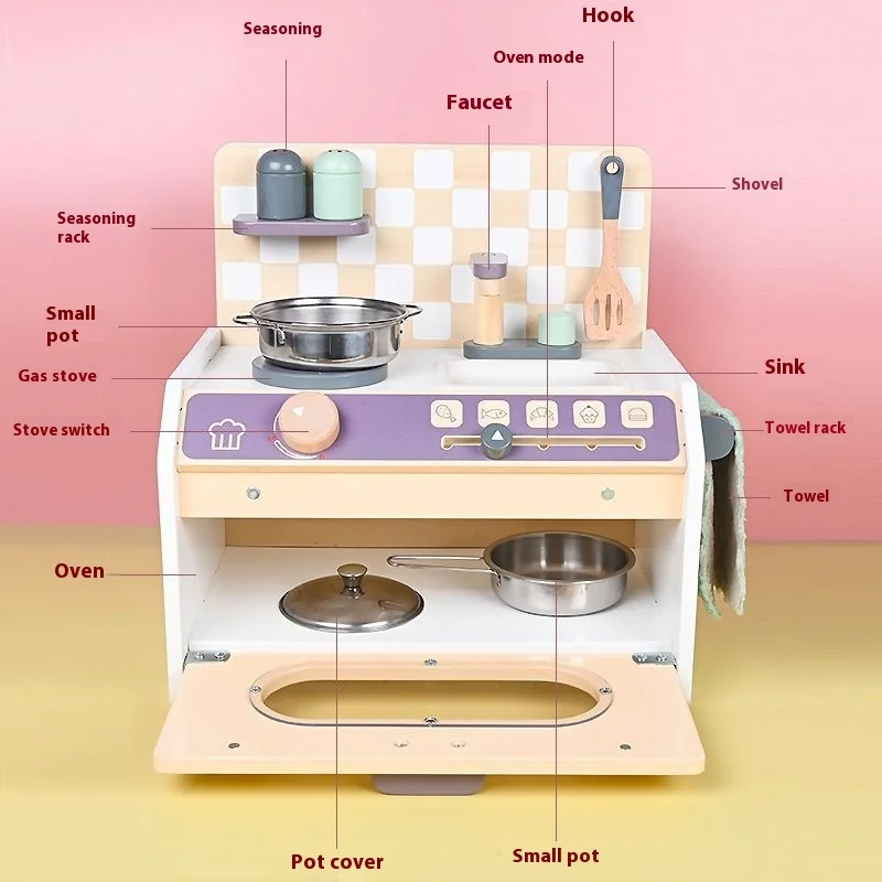 Wooden Kids Pretend Play Kitchen Toy Set with Mini Stove and Seasoning Pots for Imaginative Cooking Toy