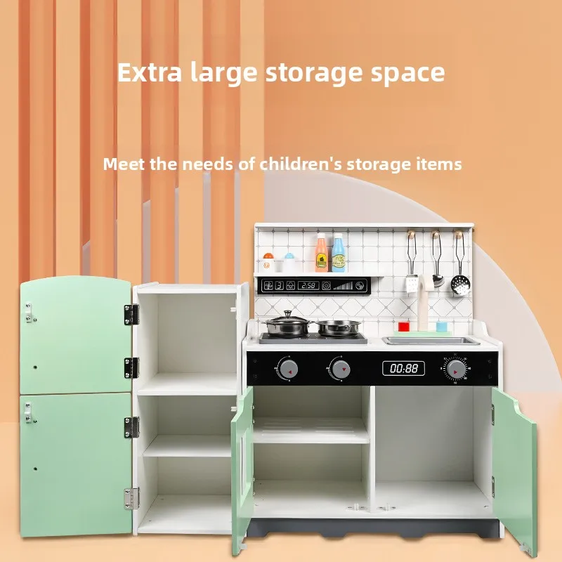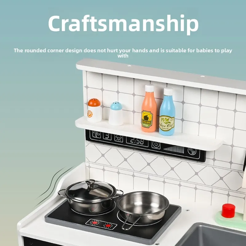 Wooden Kids Kitchen Set for Pretend Cooking Role Play with Realistic Utensils and Interactive House Toy for Children