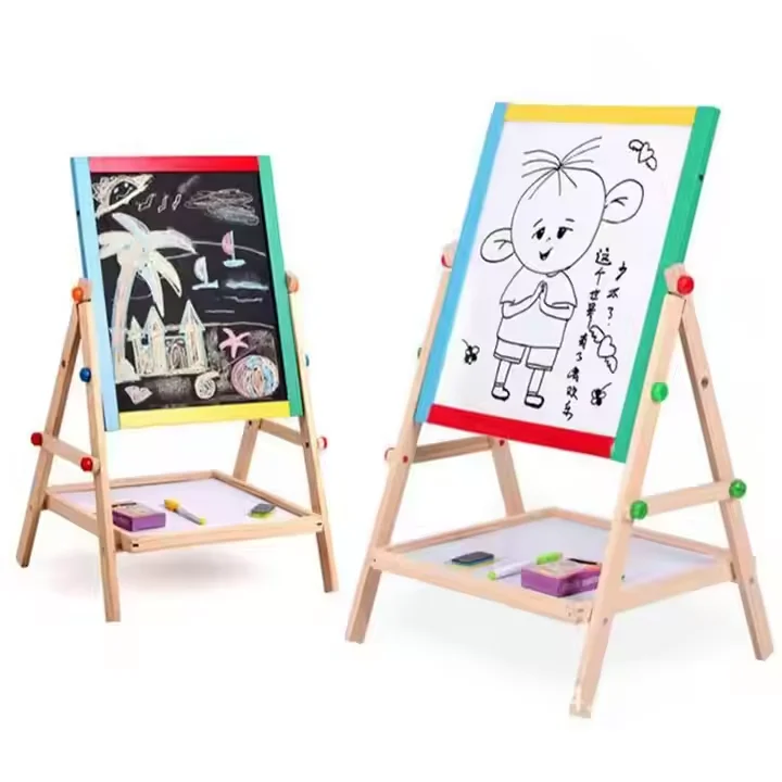 Wooden Children Double-Side Lifing 2 in 1 Drawing Board Painting Art Blackboard Montessori Educational Toys for Boys Girls
