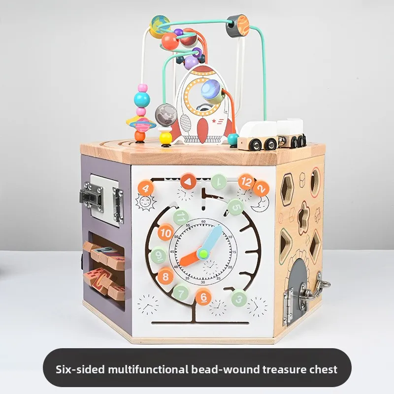 Wooden SixSided Bead Wrapping Treasure Box Multifunctional Early Learning Toy for Kids Montessori Sensory Play Toy