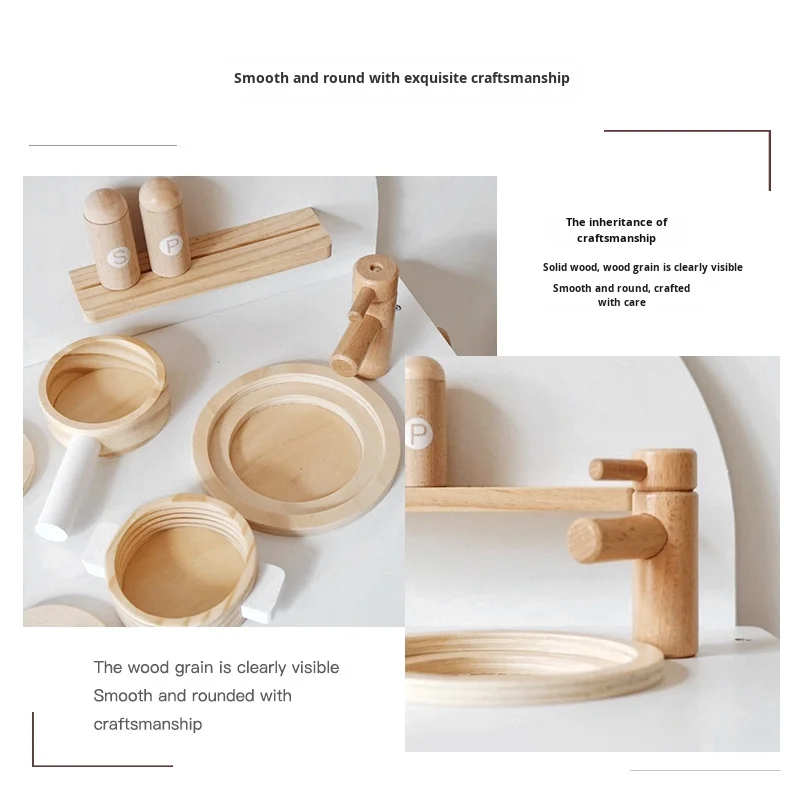 Kids Wooden Pretend Play Kitchen Set Mini Stove Cooking Toys for Role Play & Early Learning Simulation House