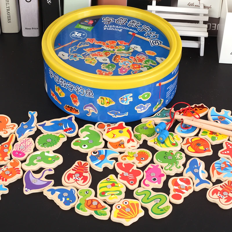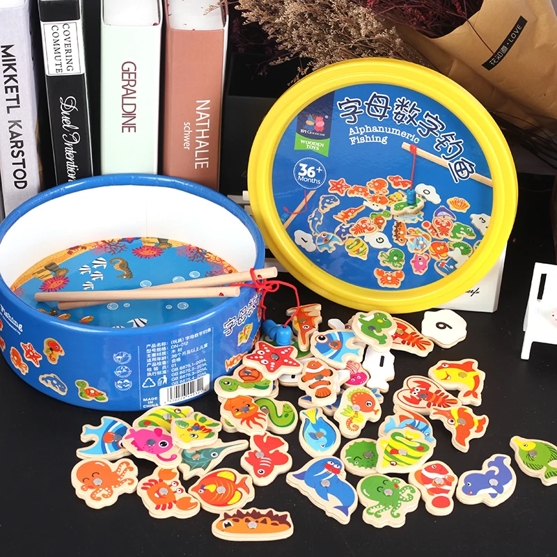 Best Selling Wooden Fishing Game Bucket Direct Sale From Manufacturer Early Educational Fishing Toy for Pre-School Age Children