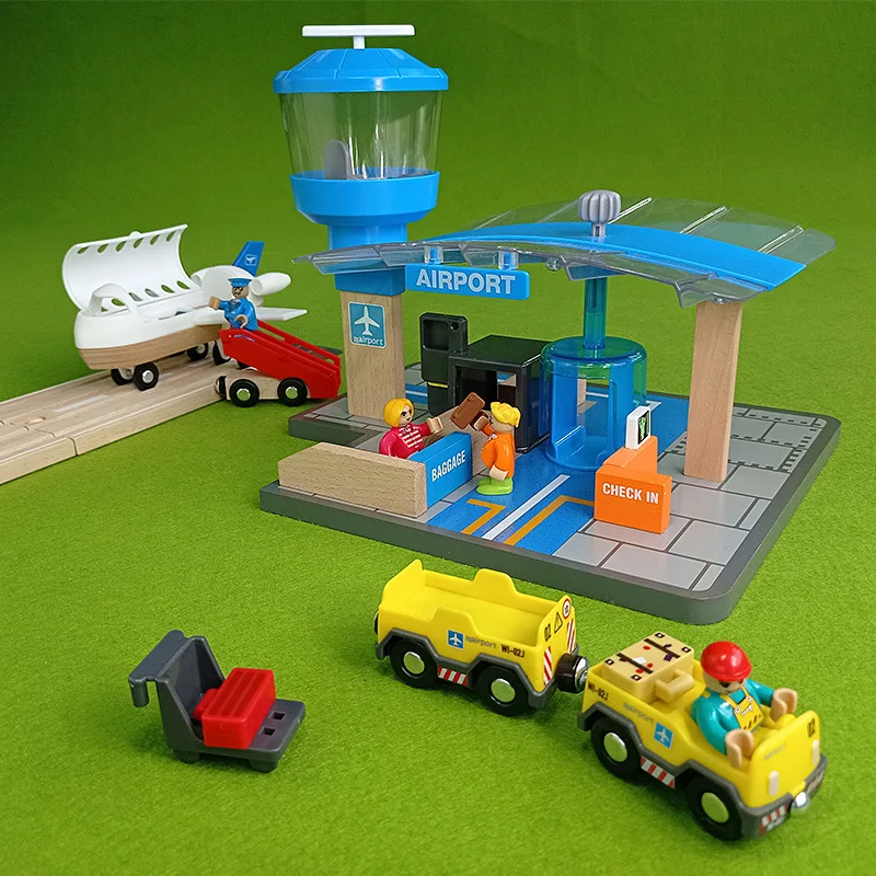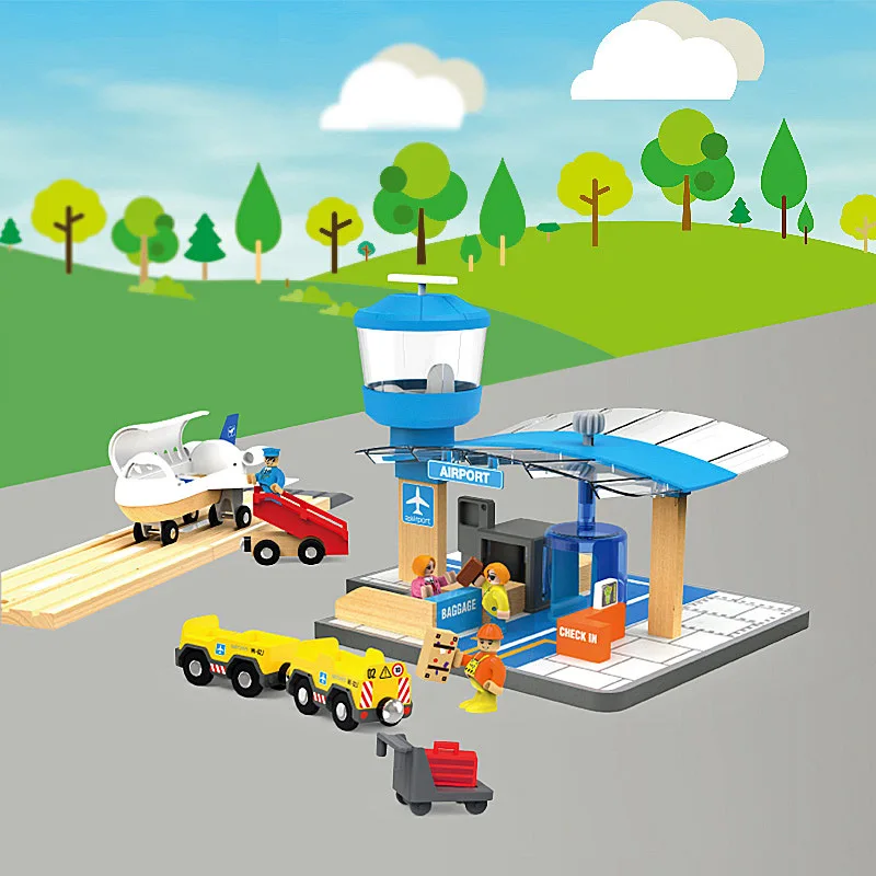 Multi-Functional Wooden Track Model for Airport Terminal Export Compatible Educational Learning Toys for Toddler Boys Girls