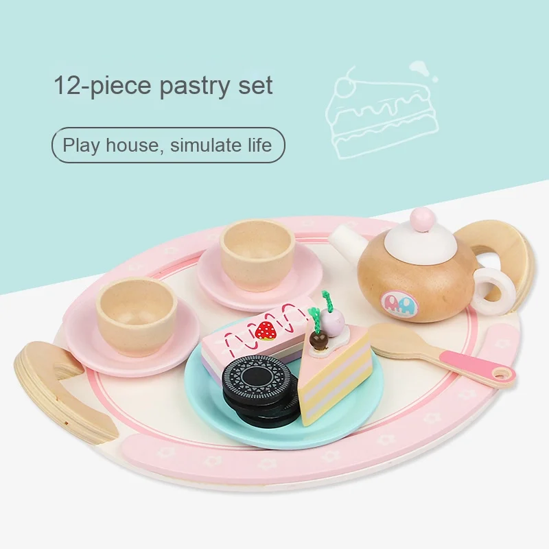 12-Piece Fruit Cake Wooden Toy Set Preschool Kitchen & Food Simulation Educational Playhouse for Kids