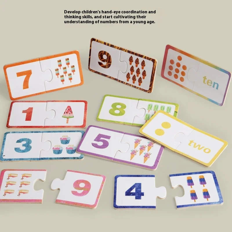 Wooden Cognitive Digital Puzzle Early Learning Parent-Child Interactive Educational Brain Teaser Kids Toy for Pairing & Matching