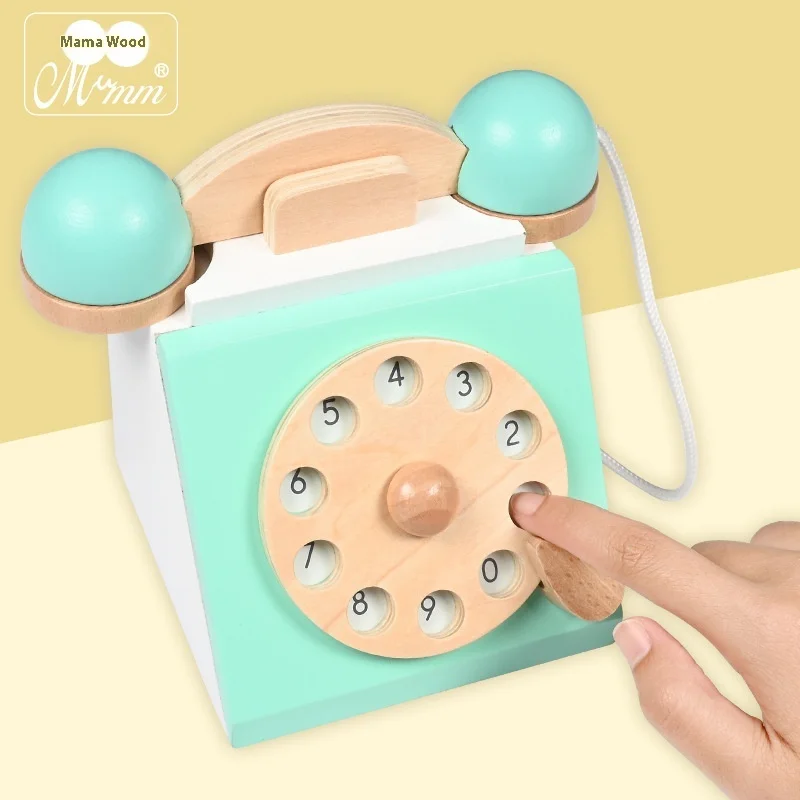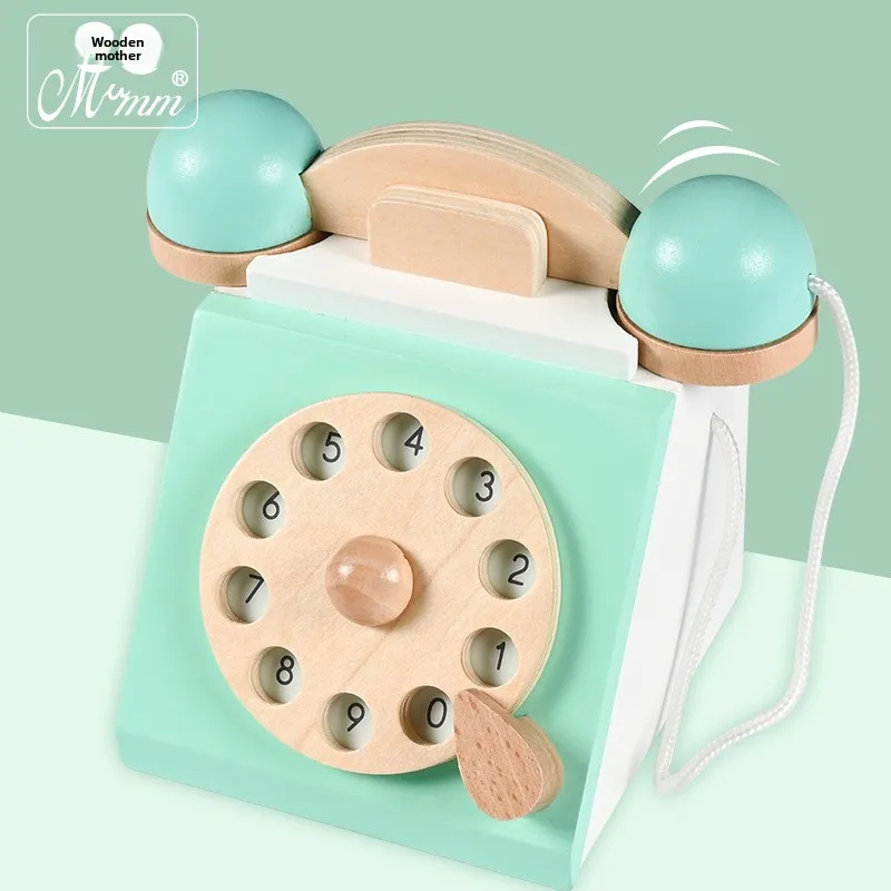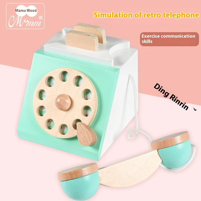 High Quality Interactive Retro Telephone Play House Early Childhood Wooden Educational Toy for Kids 3-4-5 Years Old