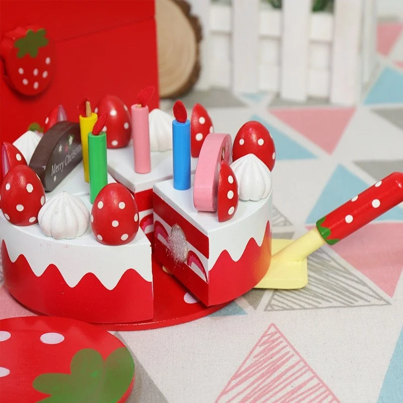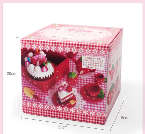 Unisex Children's Educational Kitchen Food Pretend Play Toy Set Red Strawberry Cake Afternoon Tea Wood Plastic Kids' Cooking Fun