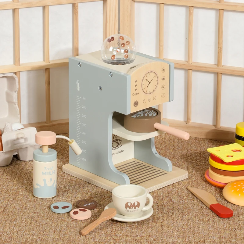 2026 Best-Selling Unisex Montessori Coffee Maker Toy Wood Material Direct Sale Manufacturer Educational Kitchen Food Toy for