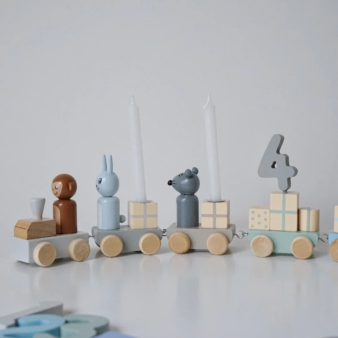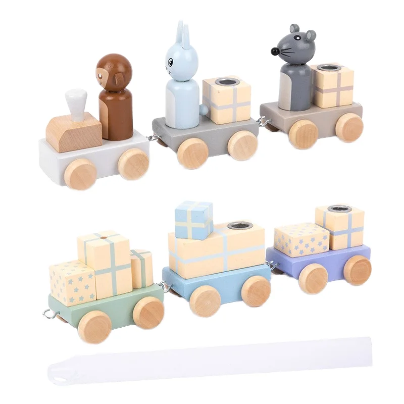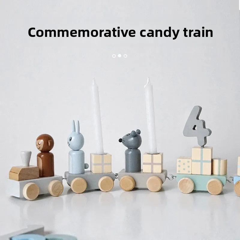 Wooden Train and Candy Playhouse Set Digital Assembly Cars Educational Pretend Play Toy for Kids Boys and Girls