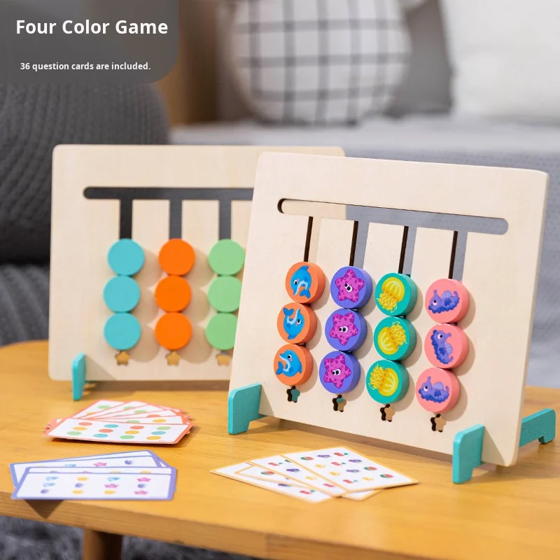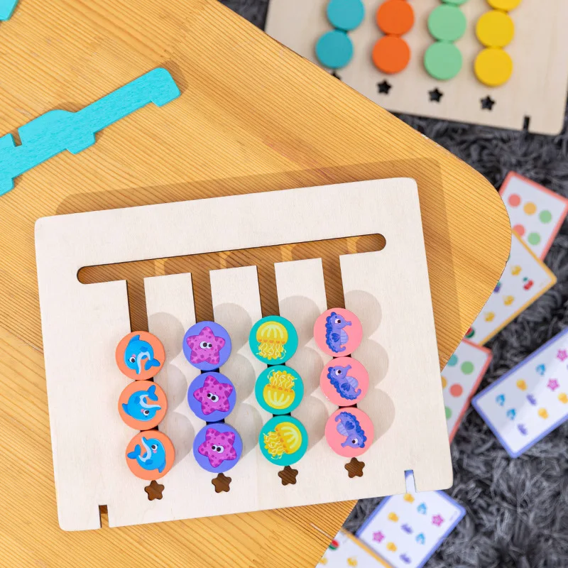 Premium Wooden Memory Chess Game for Kids with 4 Colorful Ocean Animals and Fruits Educational Brain Training Logic Toy