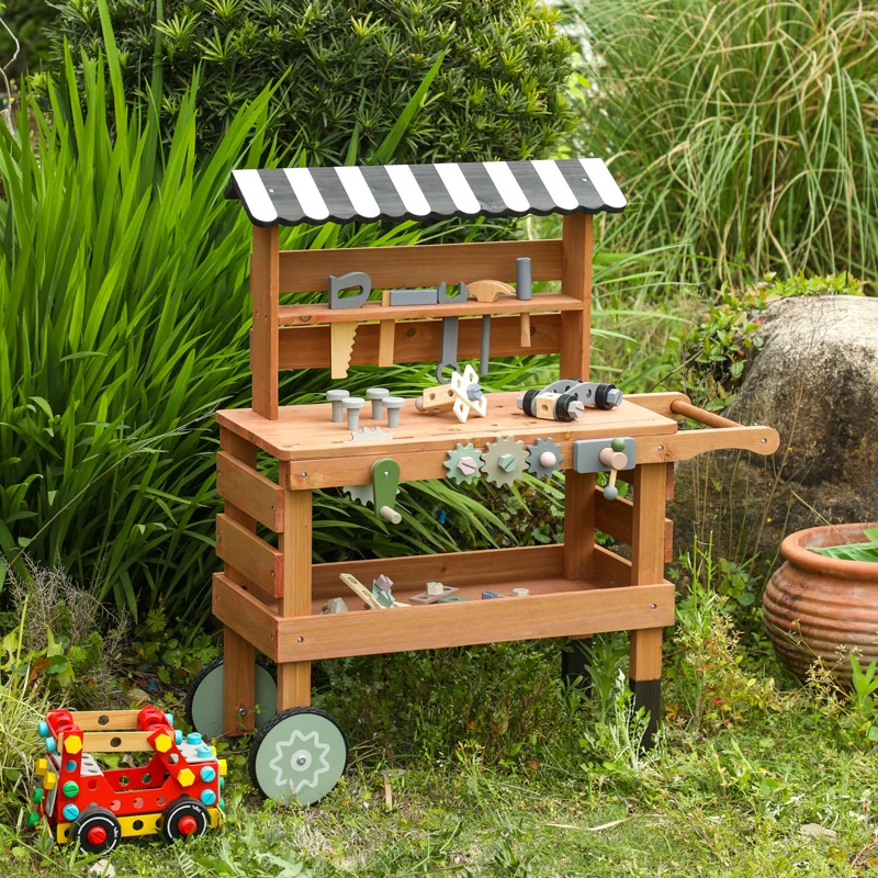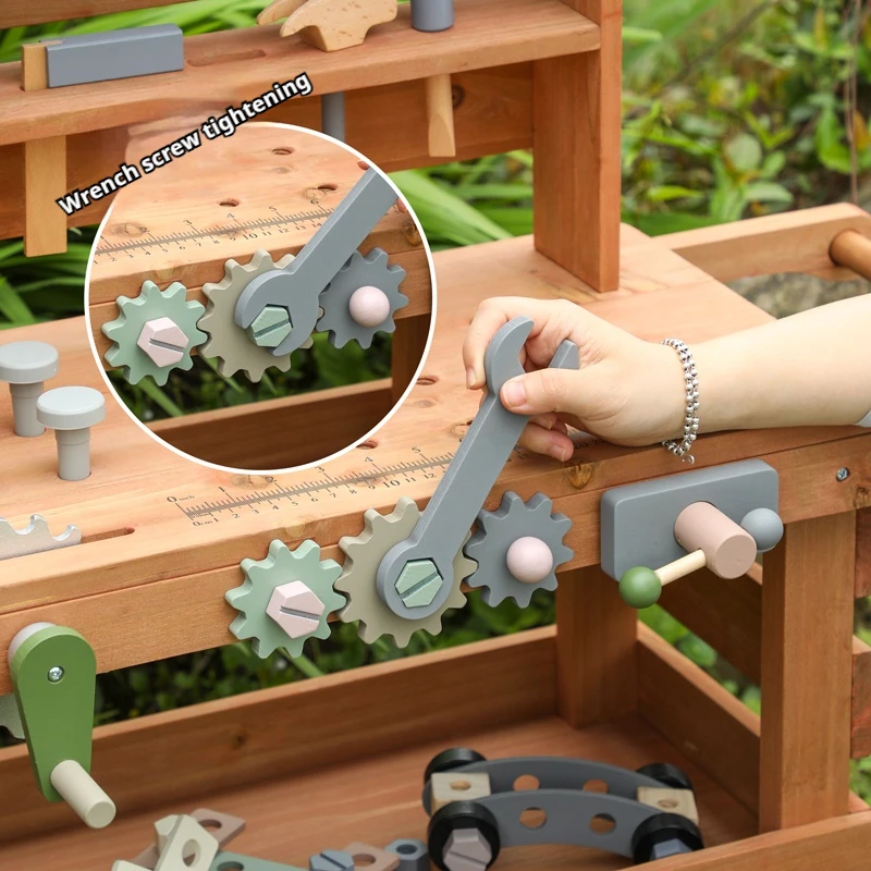 Premium Wooden Kids Workbench Toy with Realistic Tools for Pretend Play and Early Childhood Skill Development