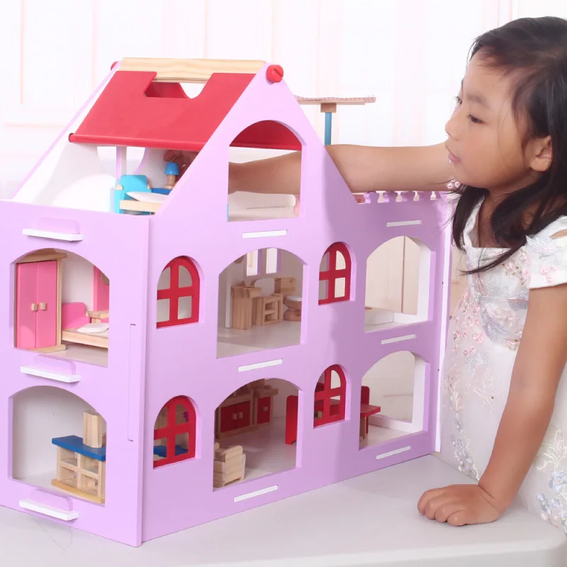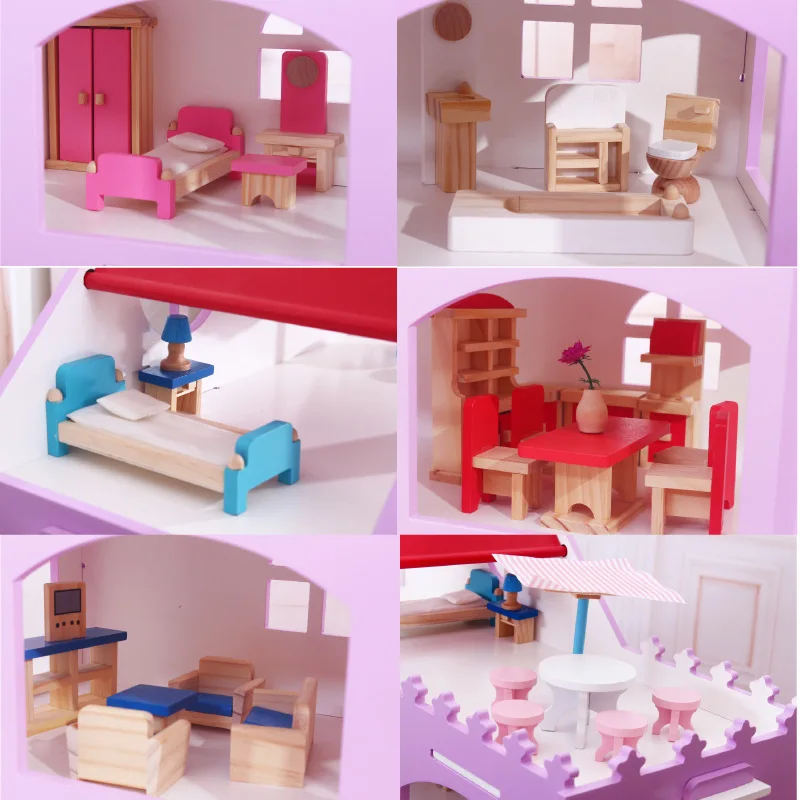 Pink Handmade Mini Wooden for Dollhouse Furniture Toy Accessorized Set for Kids Decorative Model for Children
