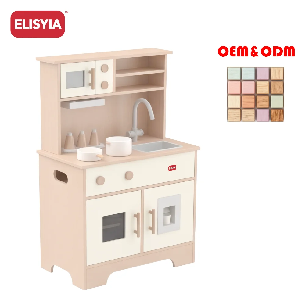 Wooden Kitchen Set 2-4 Years Pink Princess Hot Sale Faucet Cutting Fruit Utensils Fridge Oven Girls Boys