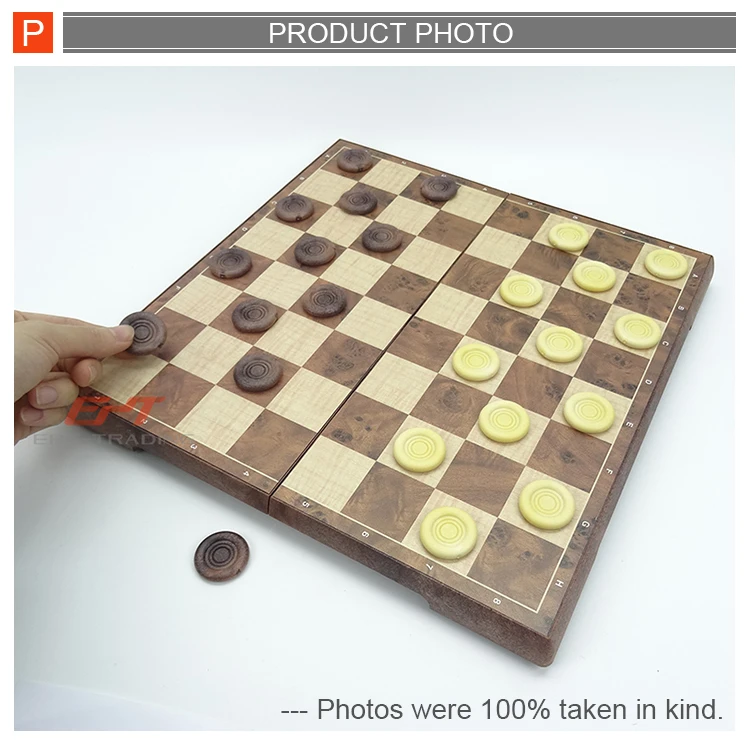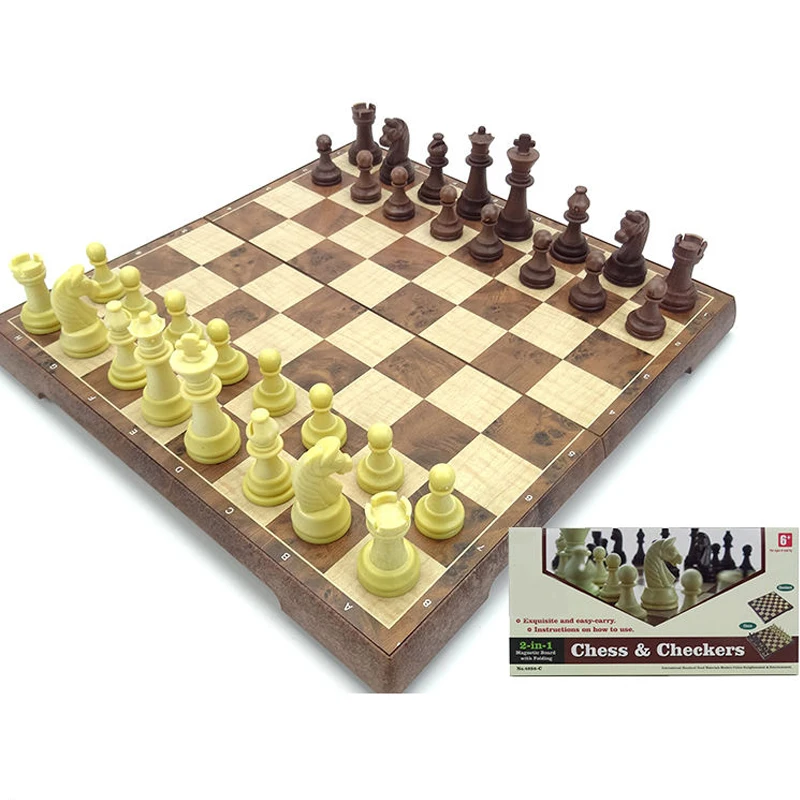 EPT Foldable 2 in 1 Wooden Chess and Checker Set Kids Play Game Toy Board Case Custom Travel Chess Set Wooden Chess Board