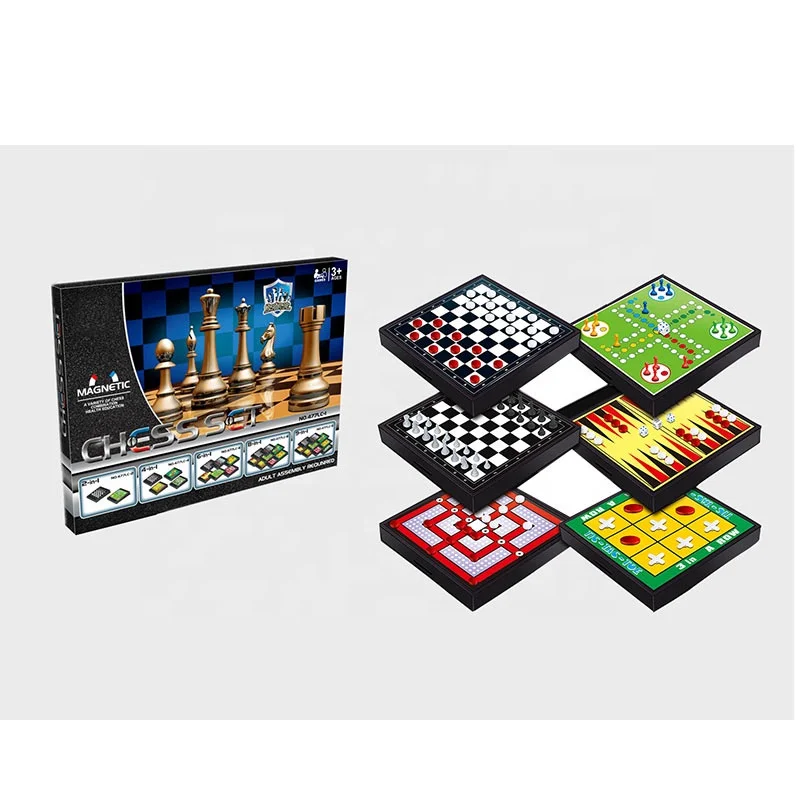 EPT Hot Sell International Custom Chess Games 6 in 1 Backgammon Gift Ludo Game Flying Snake and Ladder Checker Pieces Board Set