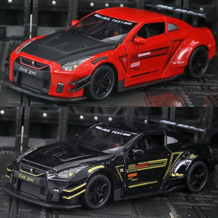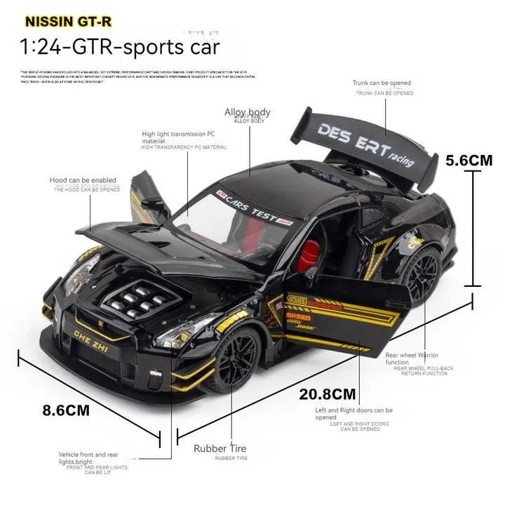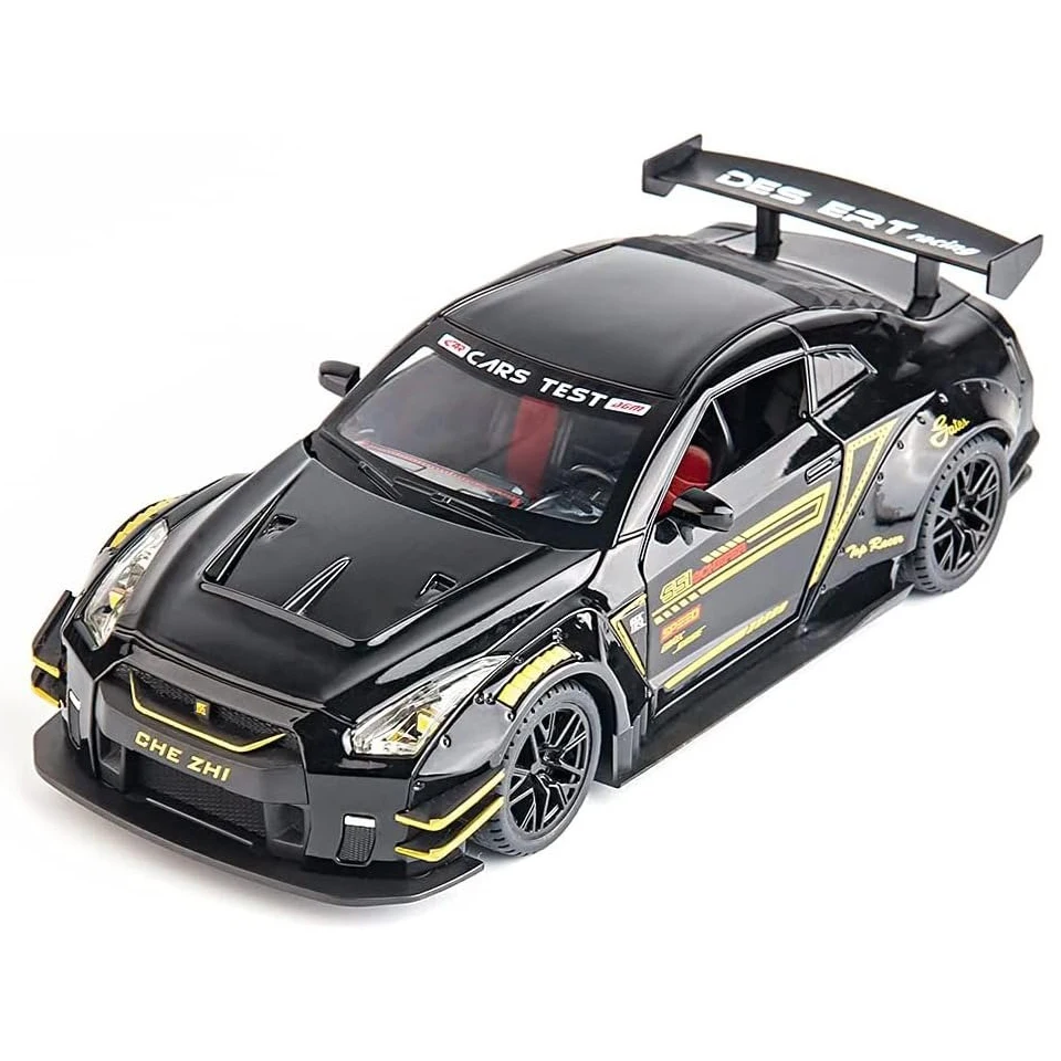 EPT Diecast Model Cars 1:24 Metal Nissan GTR Sports Car with Sound and Light Pullback Toy Model Decoration Alloy Model Car