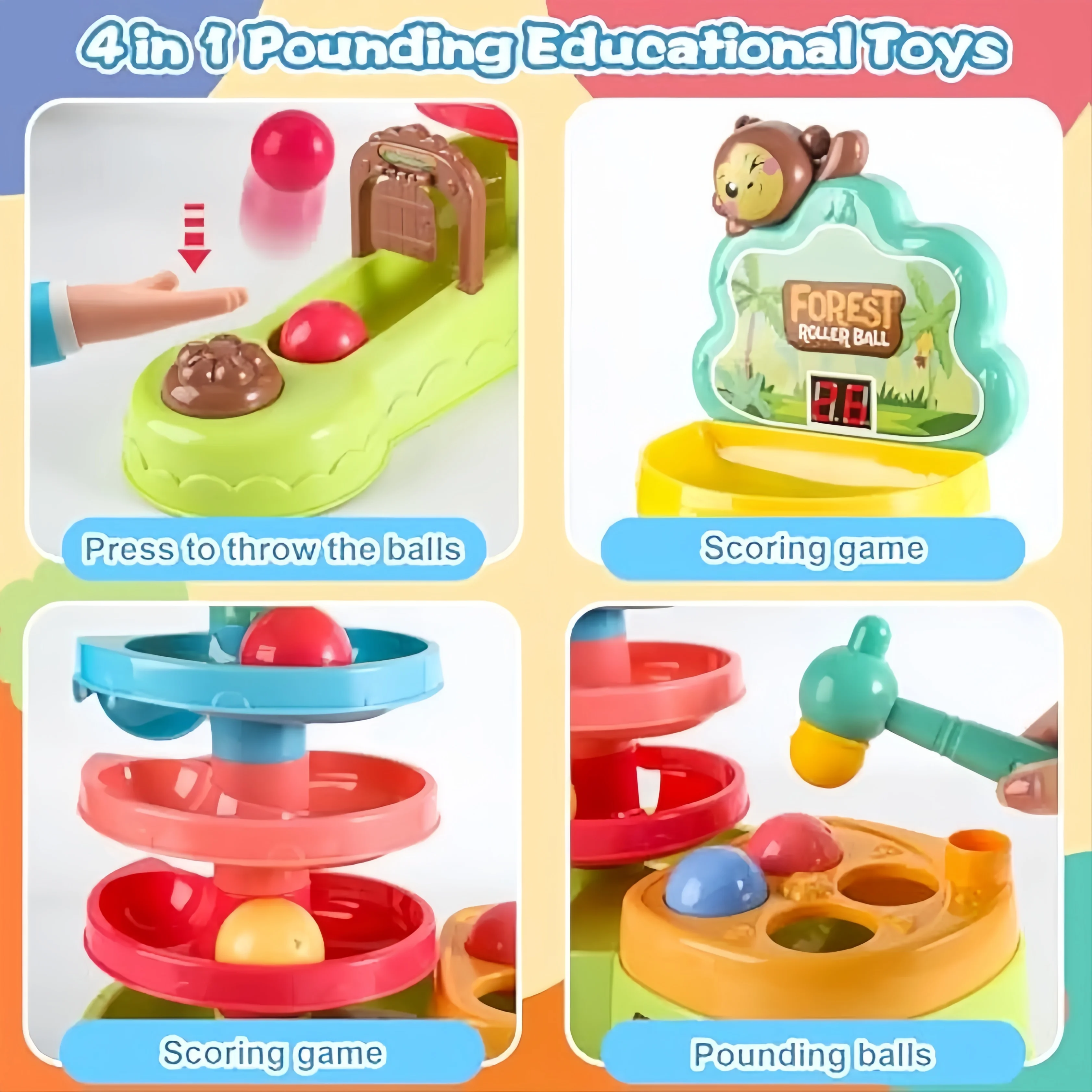 EPT Early Educational Baby Ball Drop Game Toys Diy Marble Run Set 4 in 1 Ball Drop Toy with Scoring Game for Kids