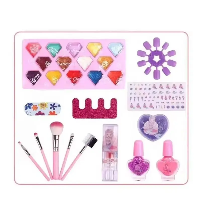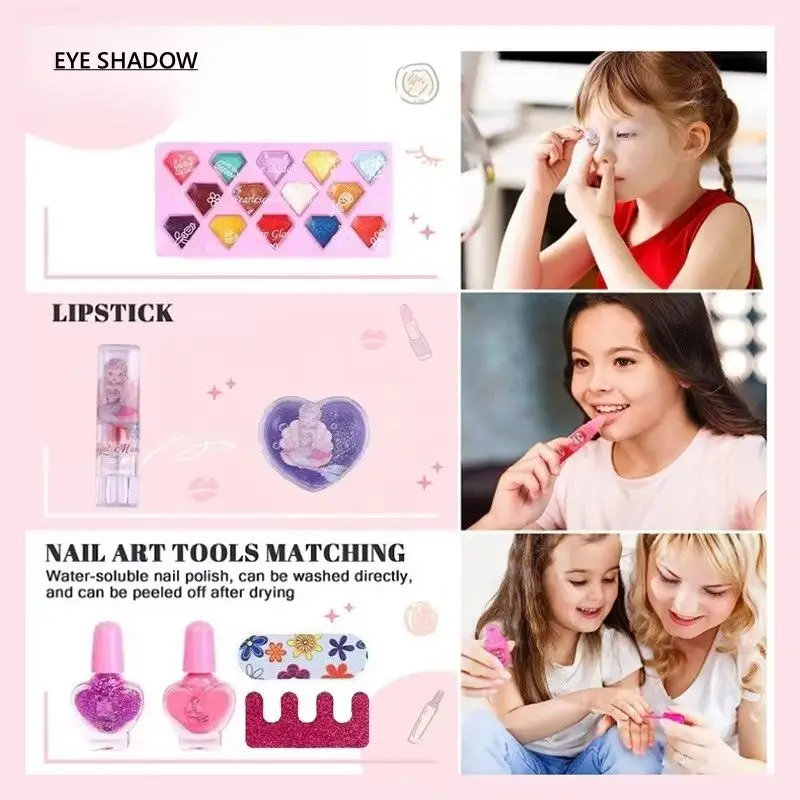 EPT New Makeup Toy Kit Real Cosmetic Case Washable Makeup Set for Princess Pretend Play Nail Art Toys Beauty