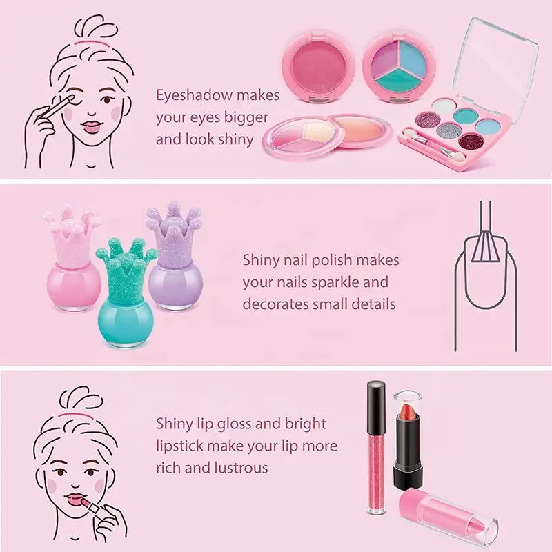 EPT Fashion Gift Girl Toy Cosmetics Princess Dress up Toy Makeup Kids Makeup Kit with Nails for Kids