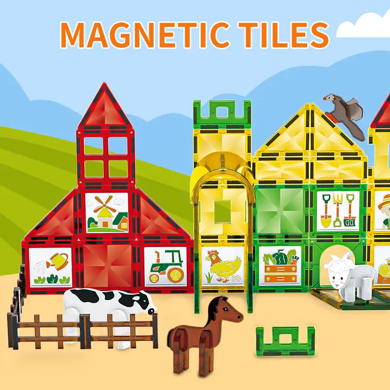 EPT 80 Piece STEM Learning Travel Toy Set Boys and Girls Magnetic Tiles Window Art with Glue Paint Magnetic Blocks