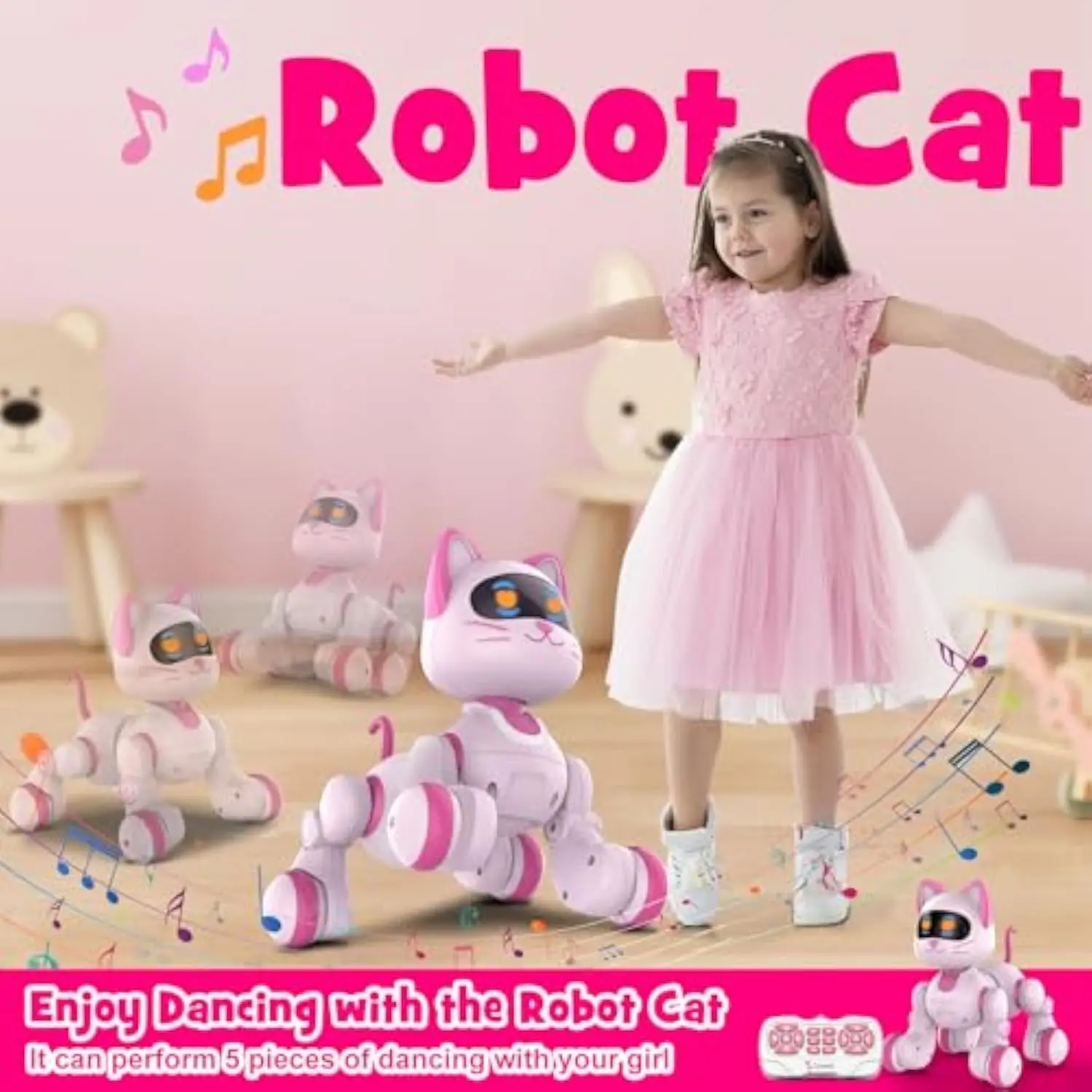 EPT Kids Educational Rechargeable Electric Dancing Interactive Programable Intelligent Remote Control Robot Cat