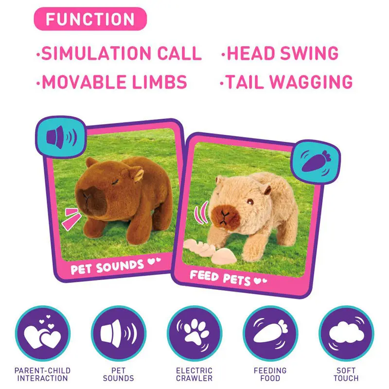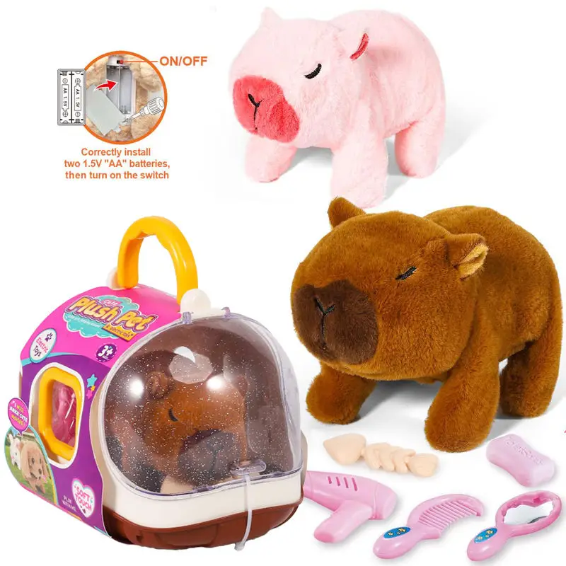 EPT New Capybara Stuffed Animal Walking Barking with Pretend Play Accessories Electronic Plush Toys for Kids