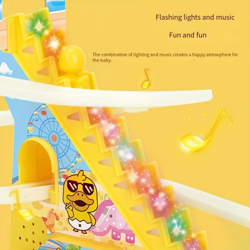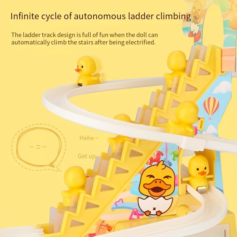 EPT Cute Duckling Light Music Early Education Toy Track Slide Toy Little Duck Electric Climbing Stairs Toy
