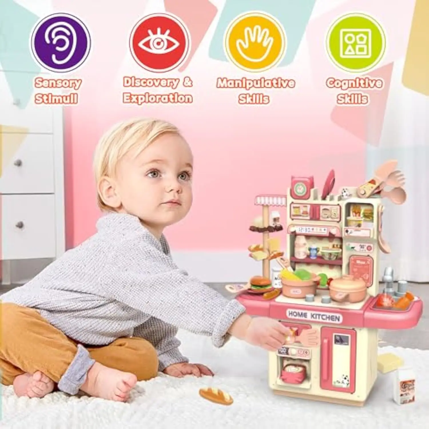 EPT Customized Plastic Role Play Kitchen Play Set Toy Kids Cooking Food Kitchen Toys Female Spraying Kitchen Set Toys