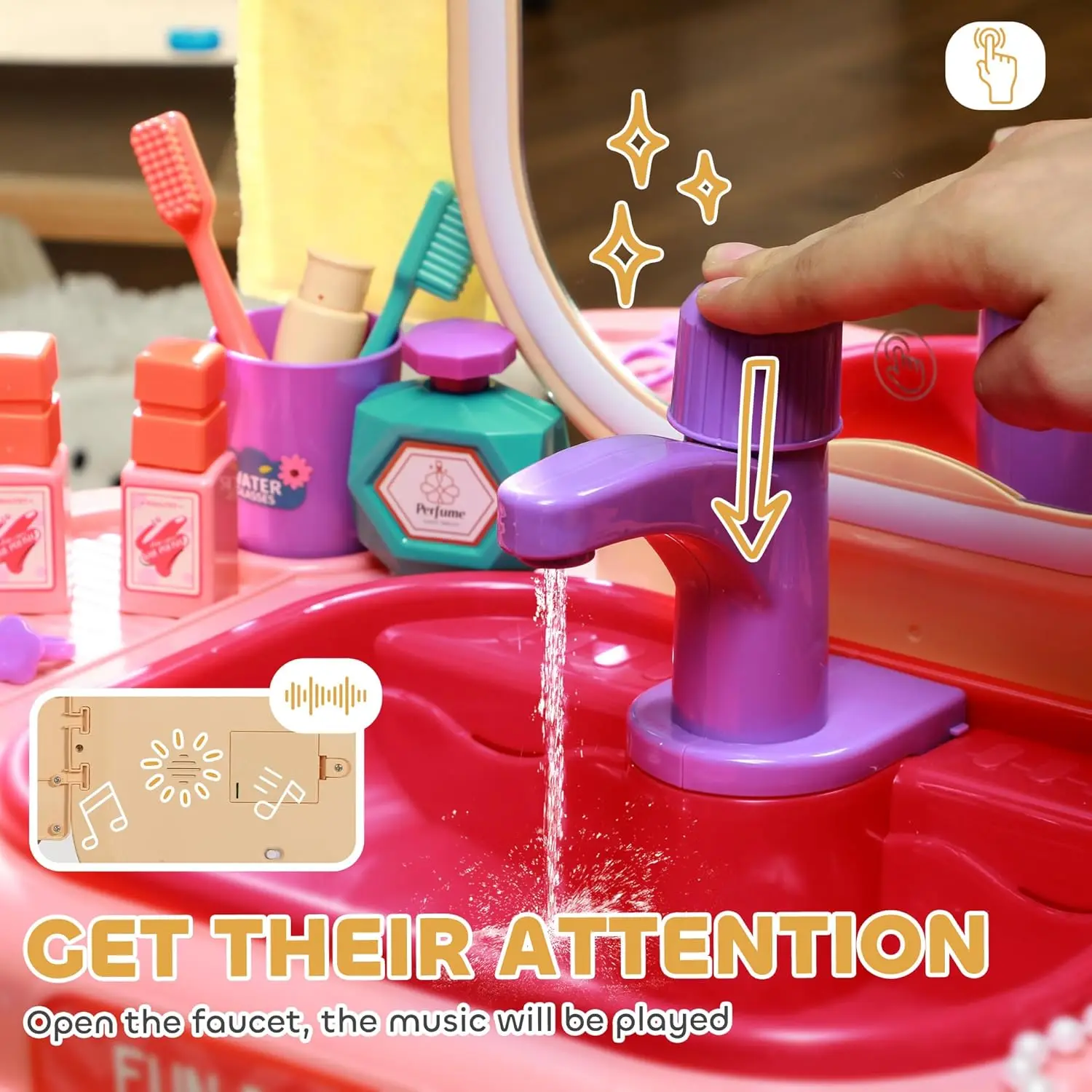 EPT Pretend Play Preschool Kids Makeup Kit Beauty Fashion Toys Dressing Mirrors Modern Dressing Table Children Toys