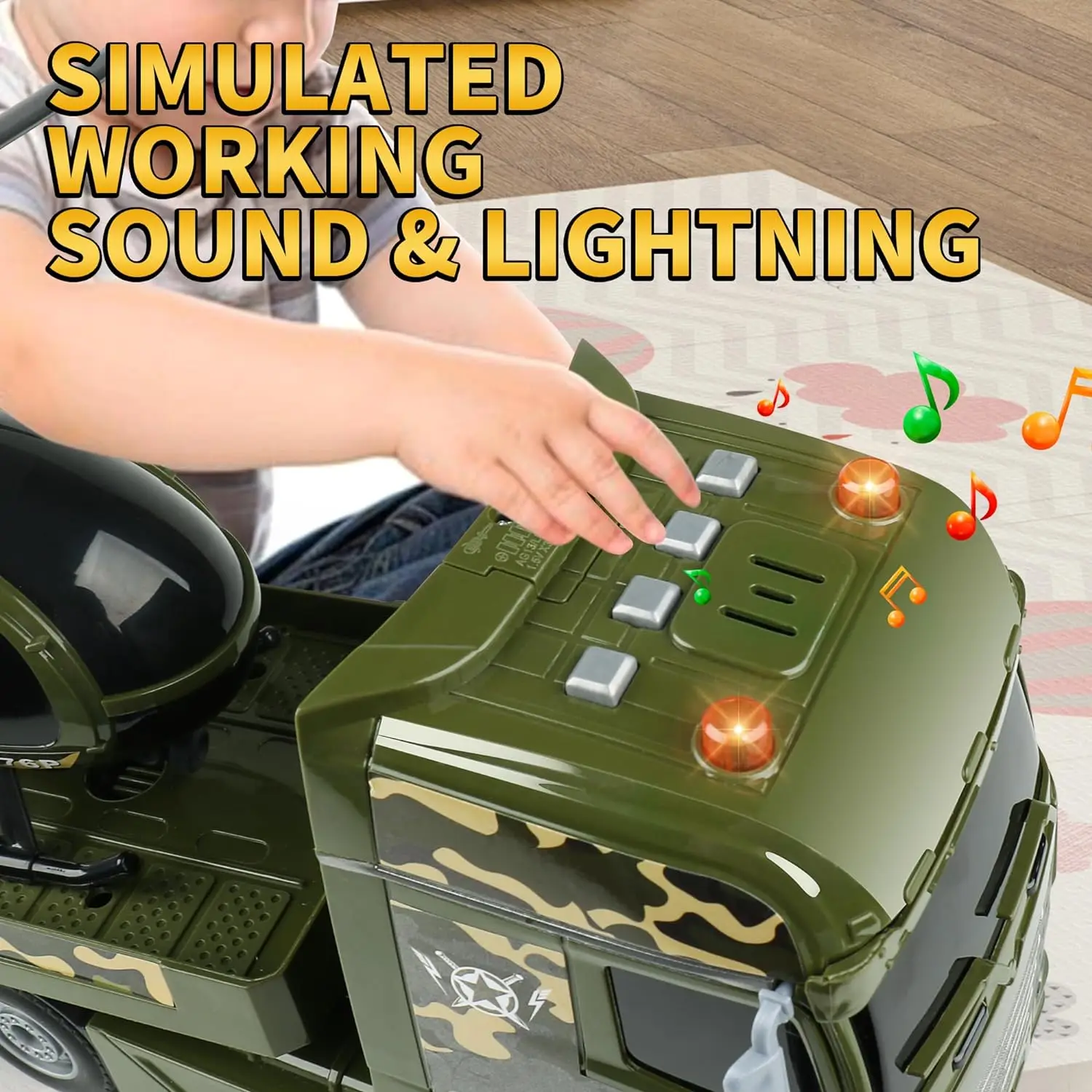 EPT Green Military Big Truck Toys 25.6" Semi Truck Toy with Helicopters and Tank Army Toys with Lights & Sounds