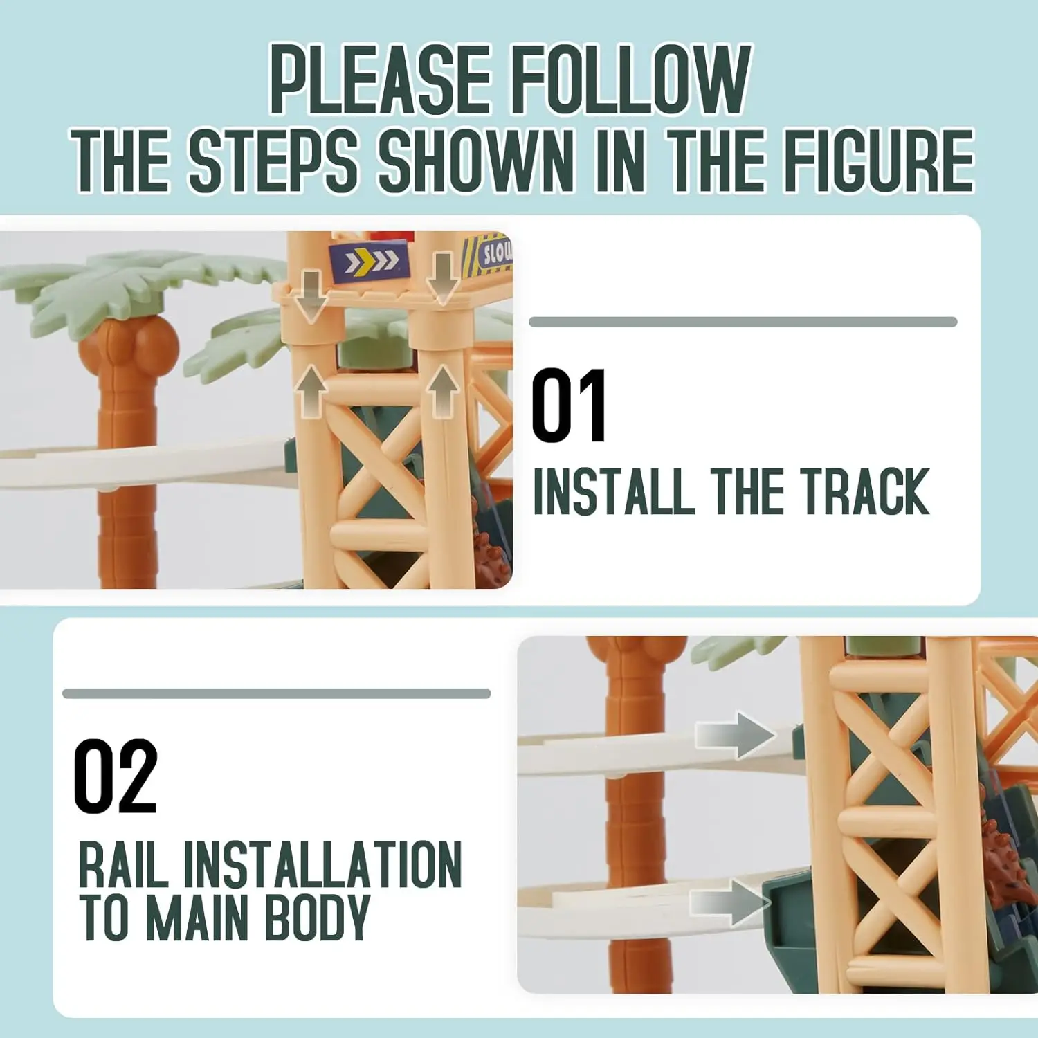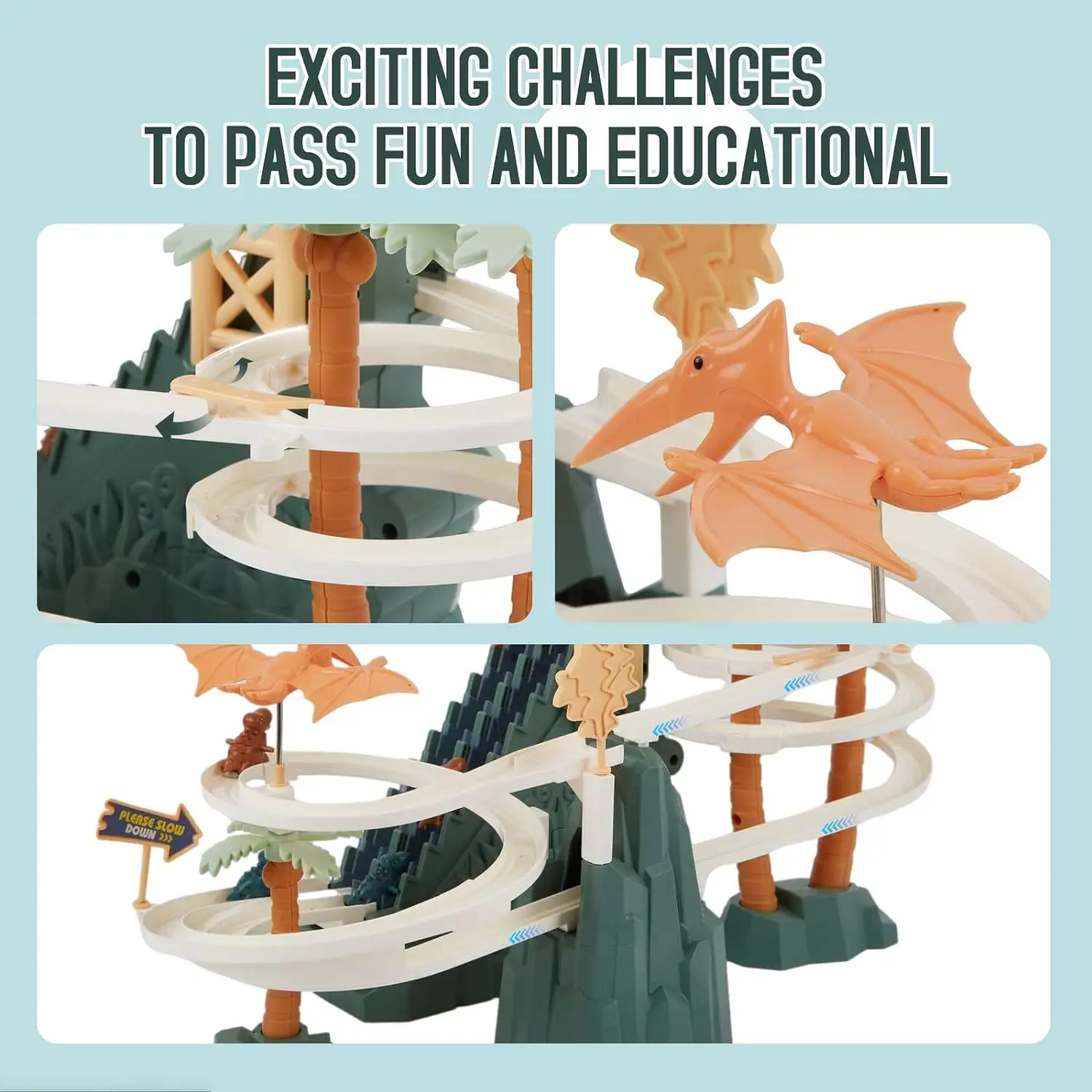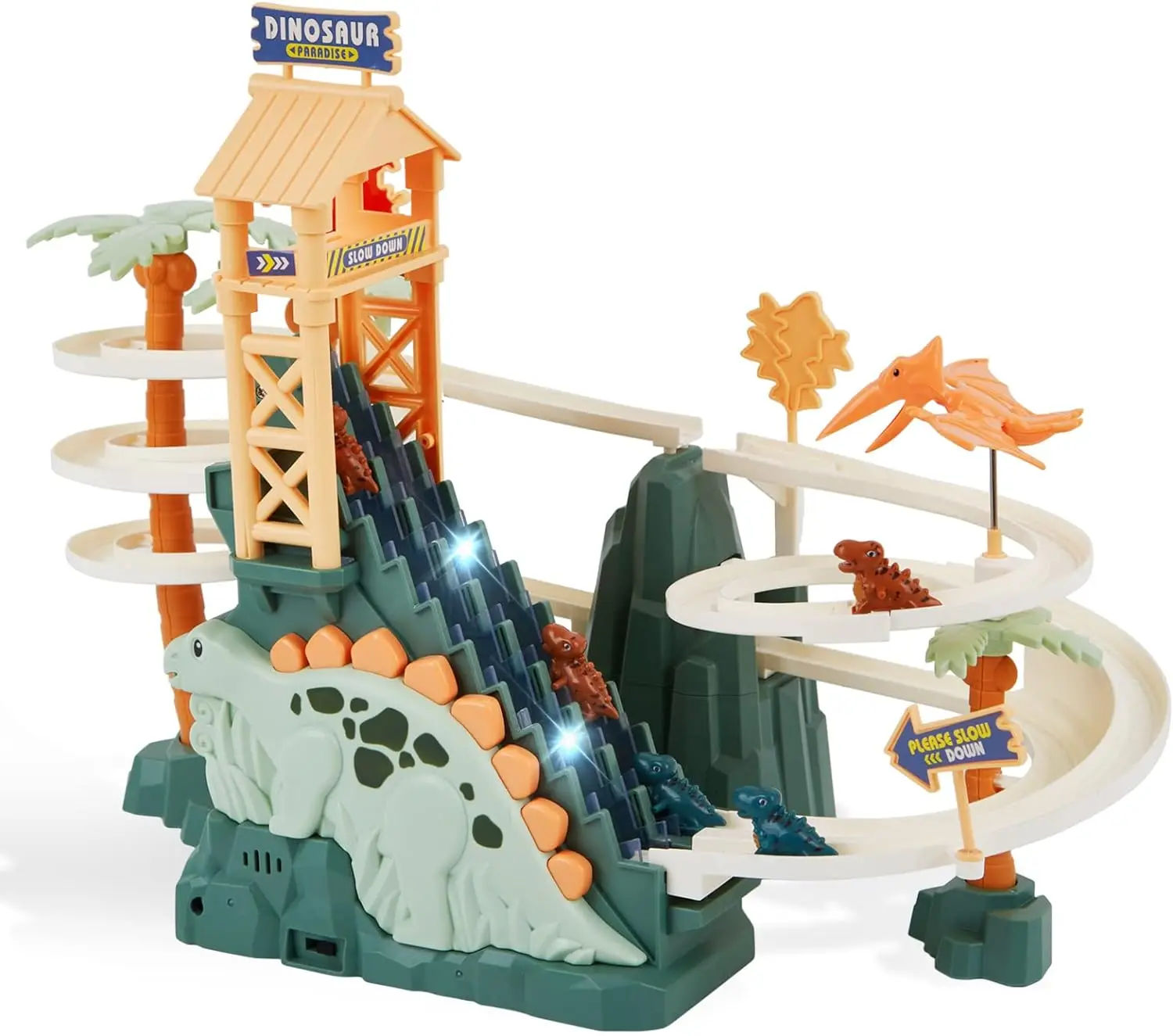 EPT Dinosaurs Climbing Slide Light up Music Stairs Toy Slot Track Dinosaur Climbing Stair Toys