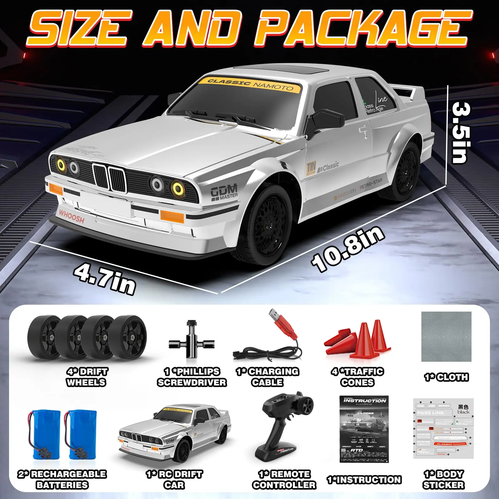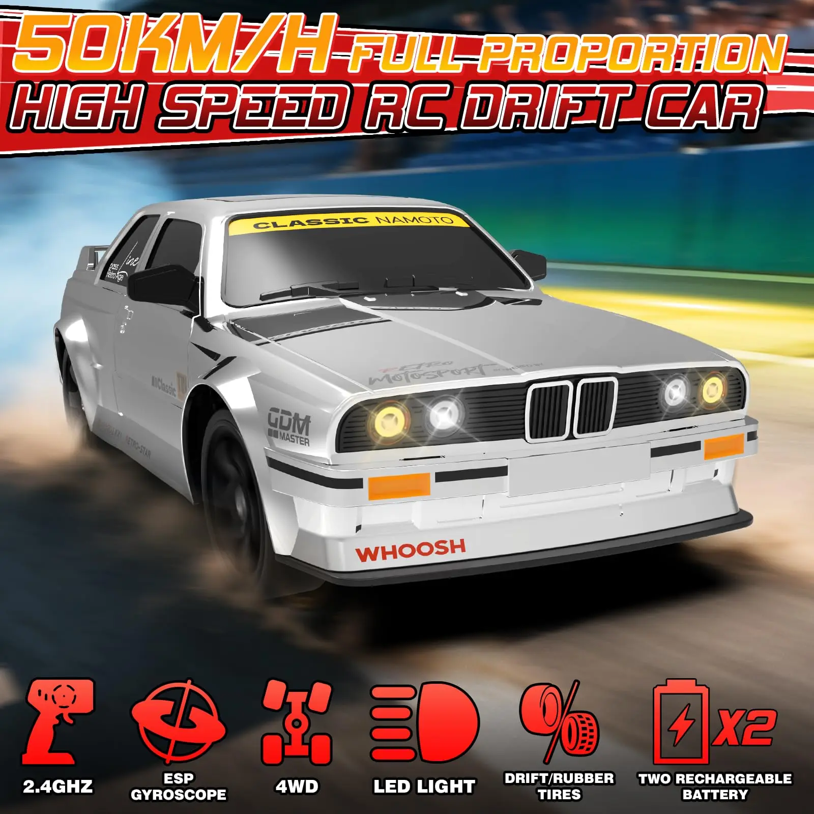 EPT RC Drift Car 1:16 4WD 2.4GHz Remote Control Drift Cars with Gyro 50km/H High Speed Full Proportion RC Car